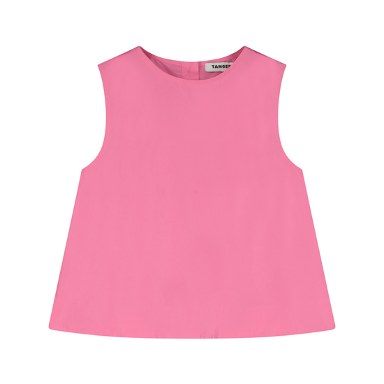 Slevelees cady taffeta blouse with A-Line silhouette, garment dyed.