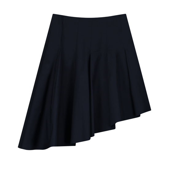 Asymmetrical skirt made from cotton blend styled with pleats. Lined.