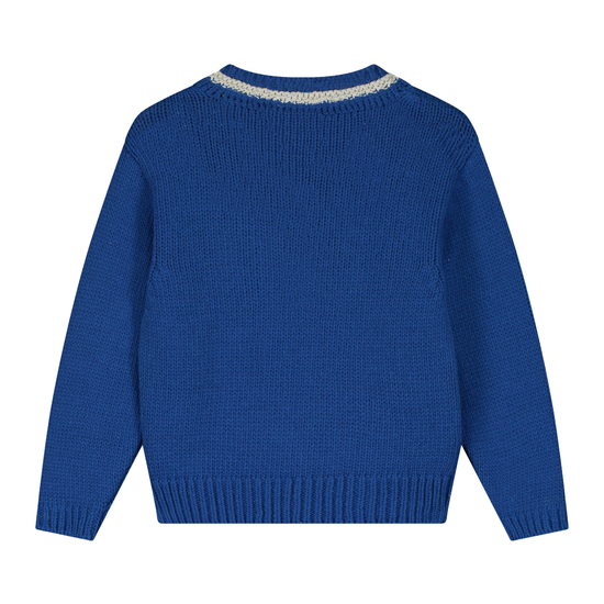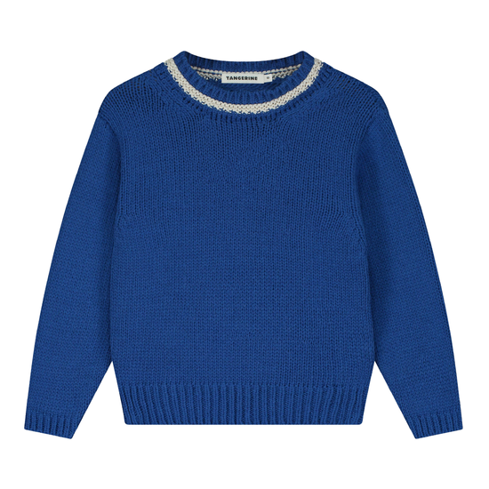 Jumper knitted with cotton blend yarn featuring a boxy fit with dropped shoulders, chunky neck styled with contrasting stripe.