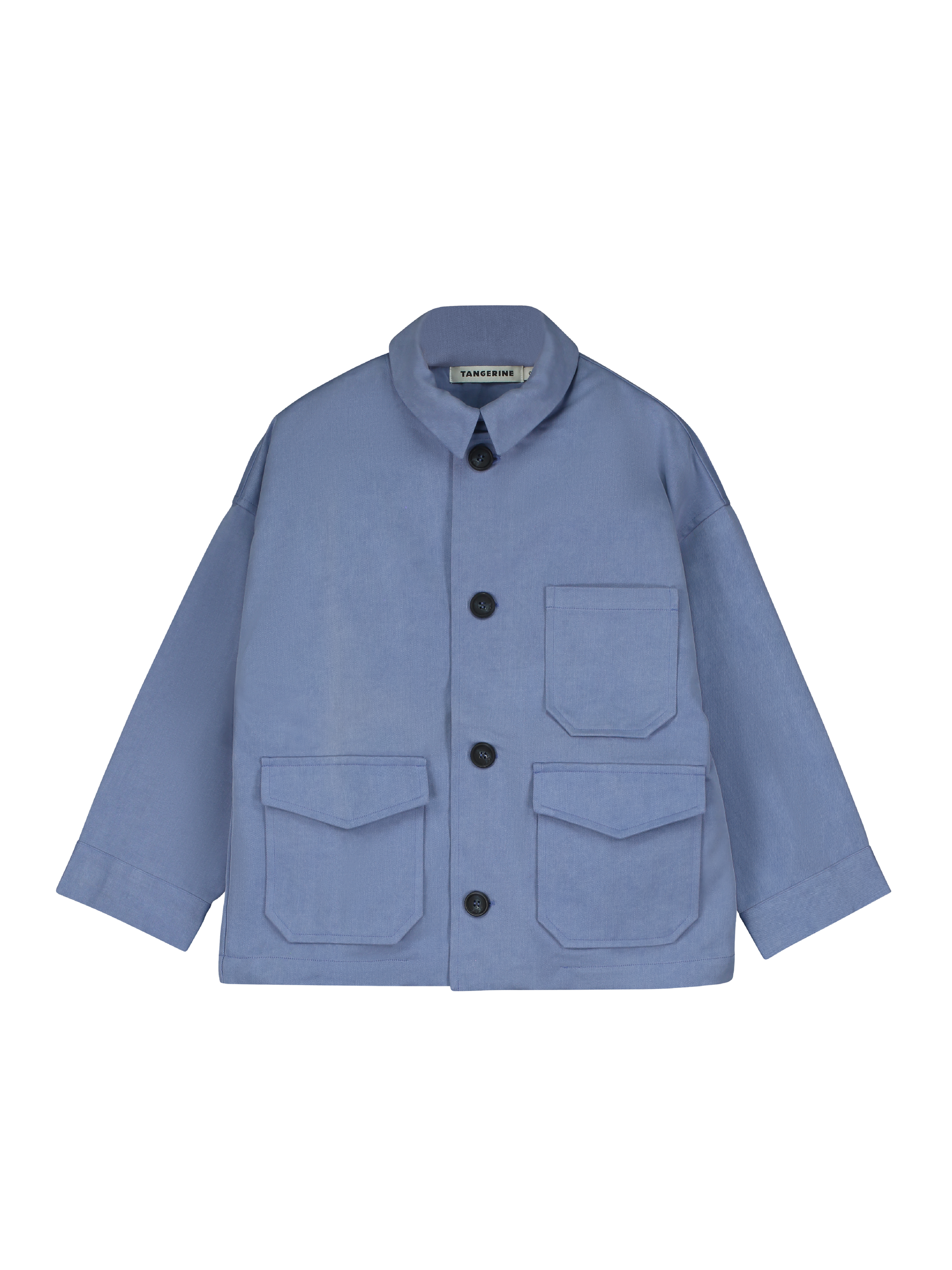 Oversized jacket made from cotton. Concealed zip closure and buttoned. Front gusseted pockets. Boxy fit with shirt collar. Unlined. Garment gyed.