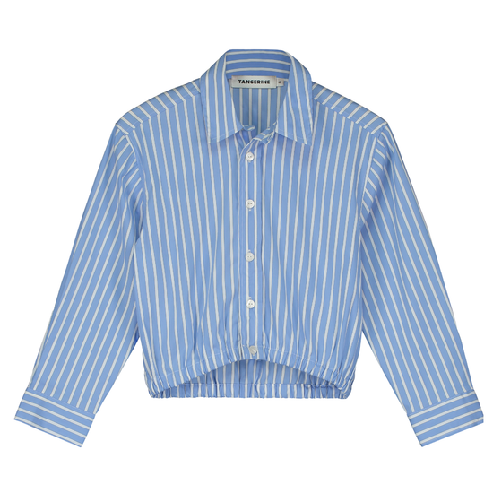 Cropped shirt made from cotton blend styled with pointed collar, buttoned cuffs and button closure. Elasticated hem with spaguetti straps.