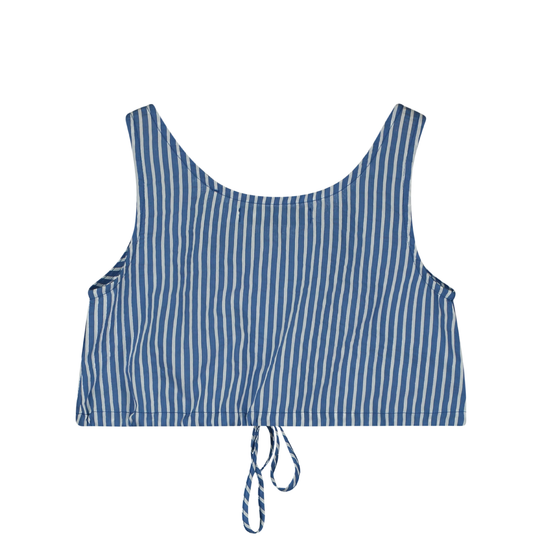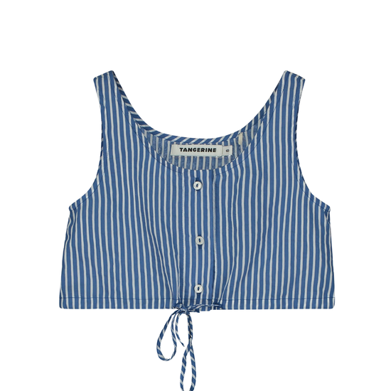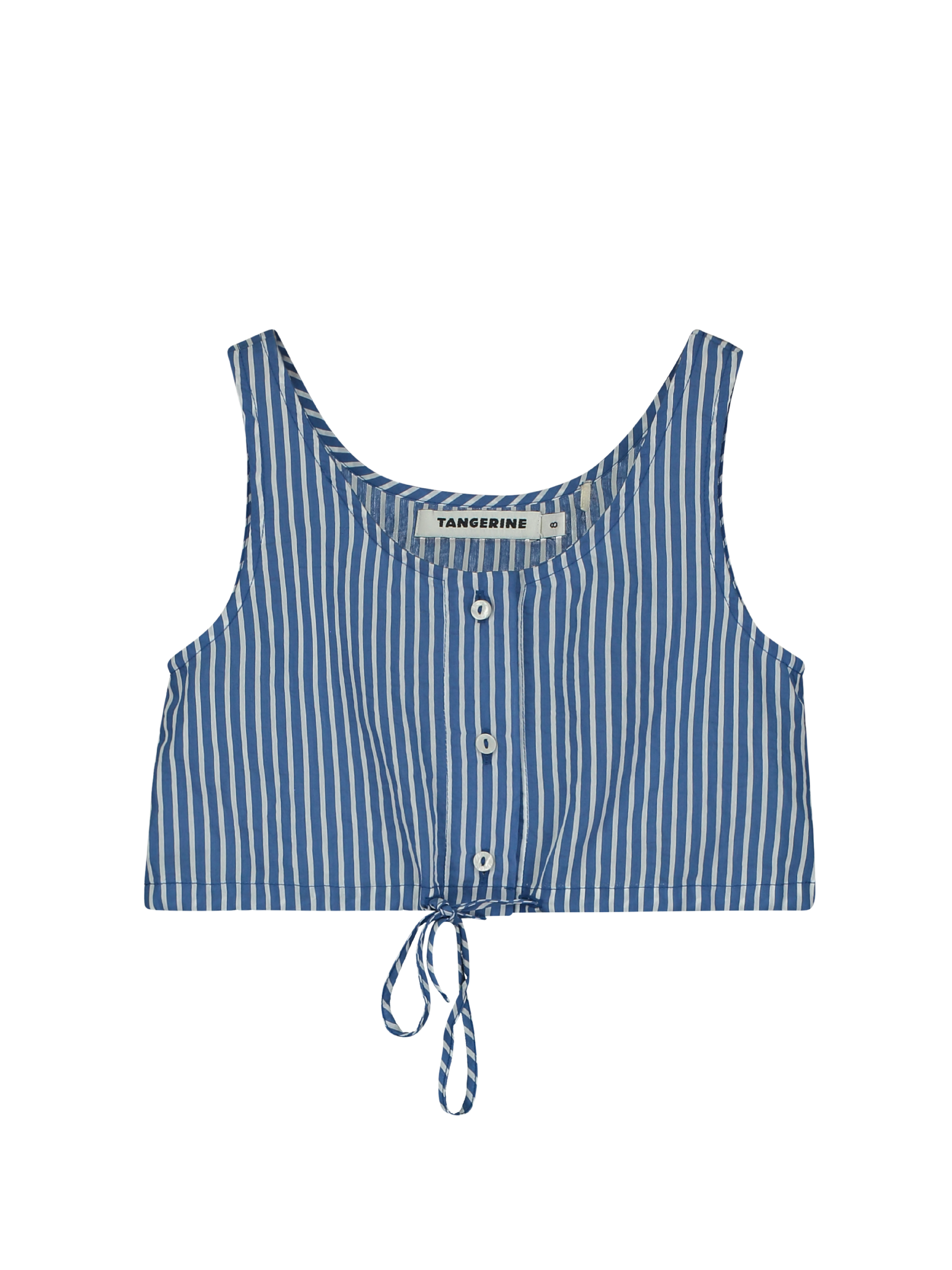 Sleeveless top in soft woven striped cotton styled with buttons full length of front.