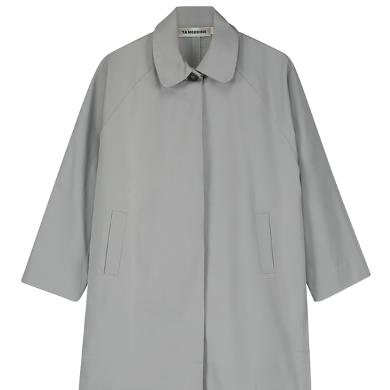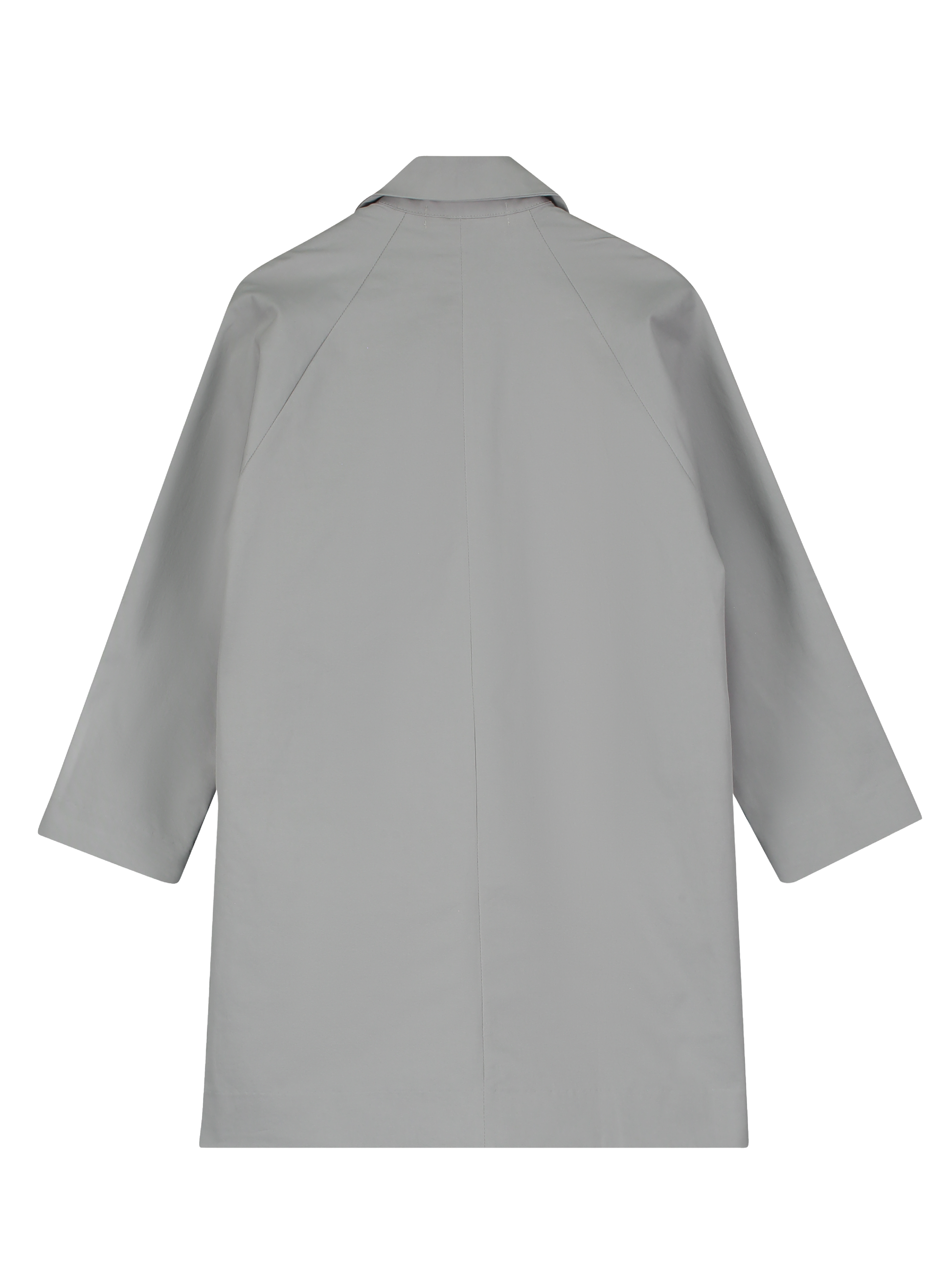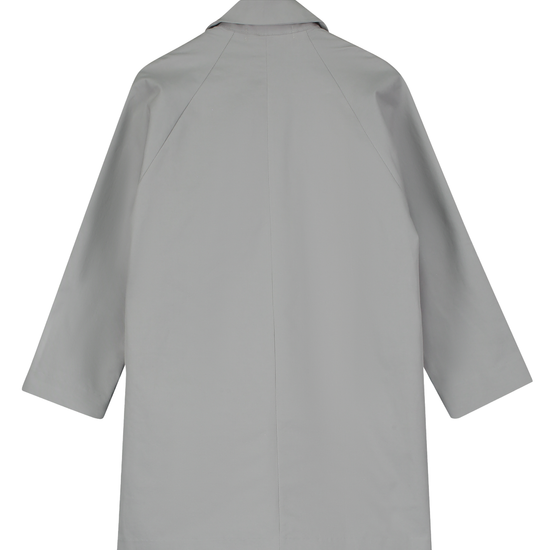 Mid length single-breasted coat made from cotton blend. Straight fit with side pockets. Concealed button up placket. Garment dyed.