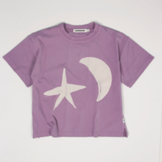 Corte holgado, manga corta, estrella y luna.