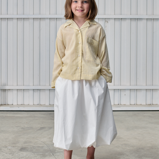 Midi puff ball skirt made from cotton. Styled with two side pockets and elasticated waistband. Lined.
