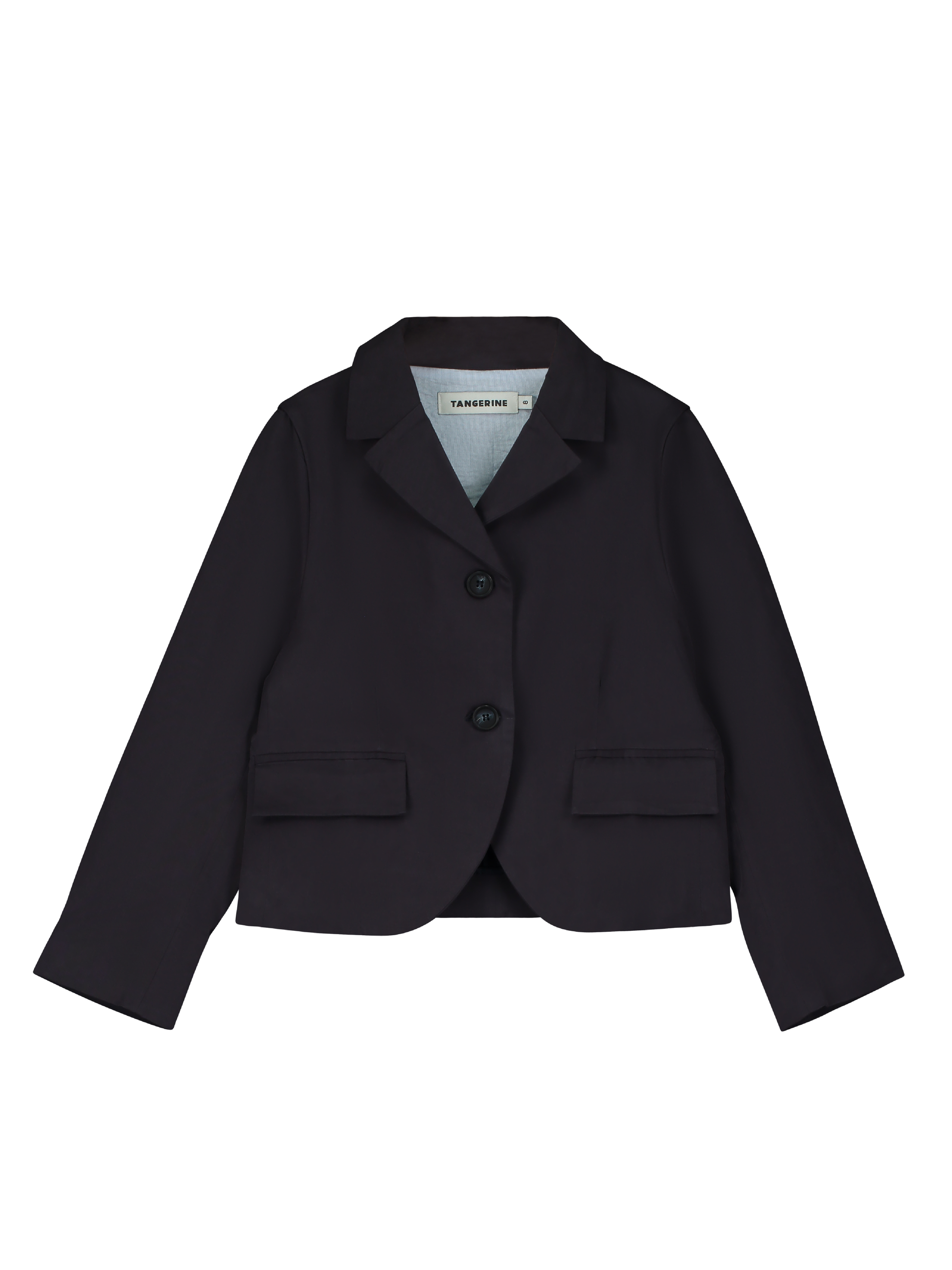 Single-breasted jacket made from cotton poplin with a compact feel. Cropped fit, notch lapels and flap pockets. Fastens with two buttons. Lined. Garment Dyed.