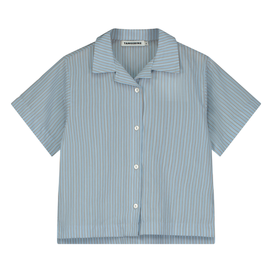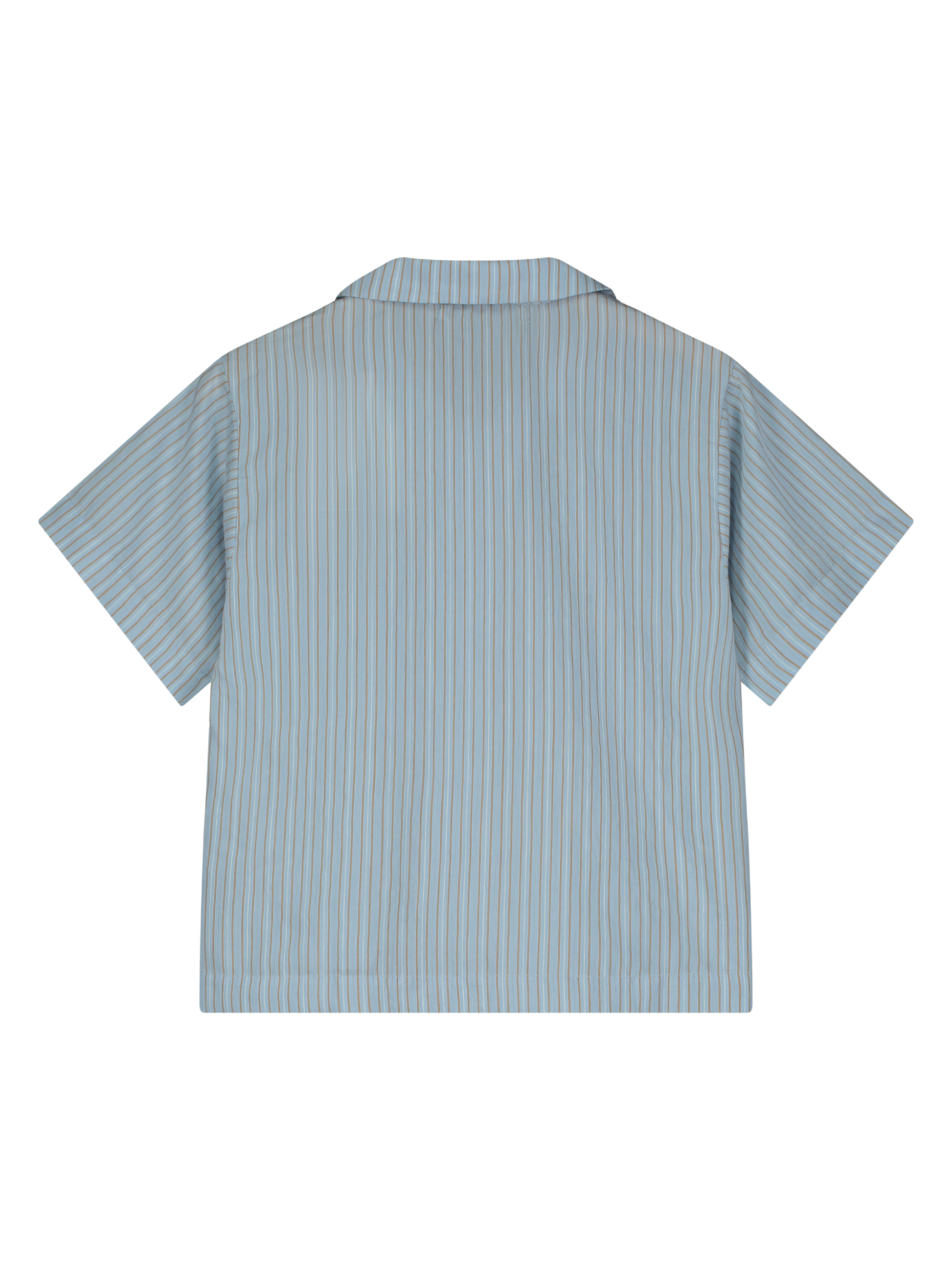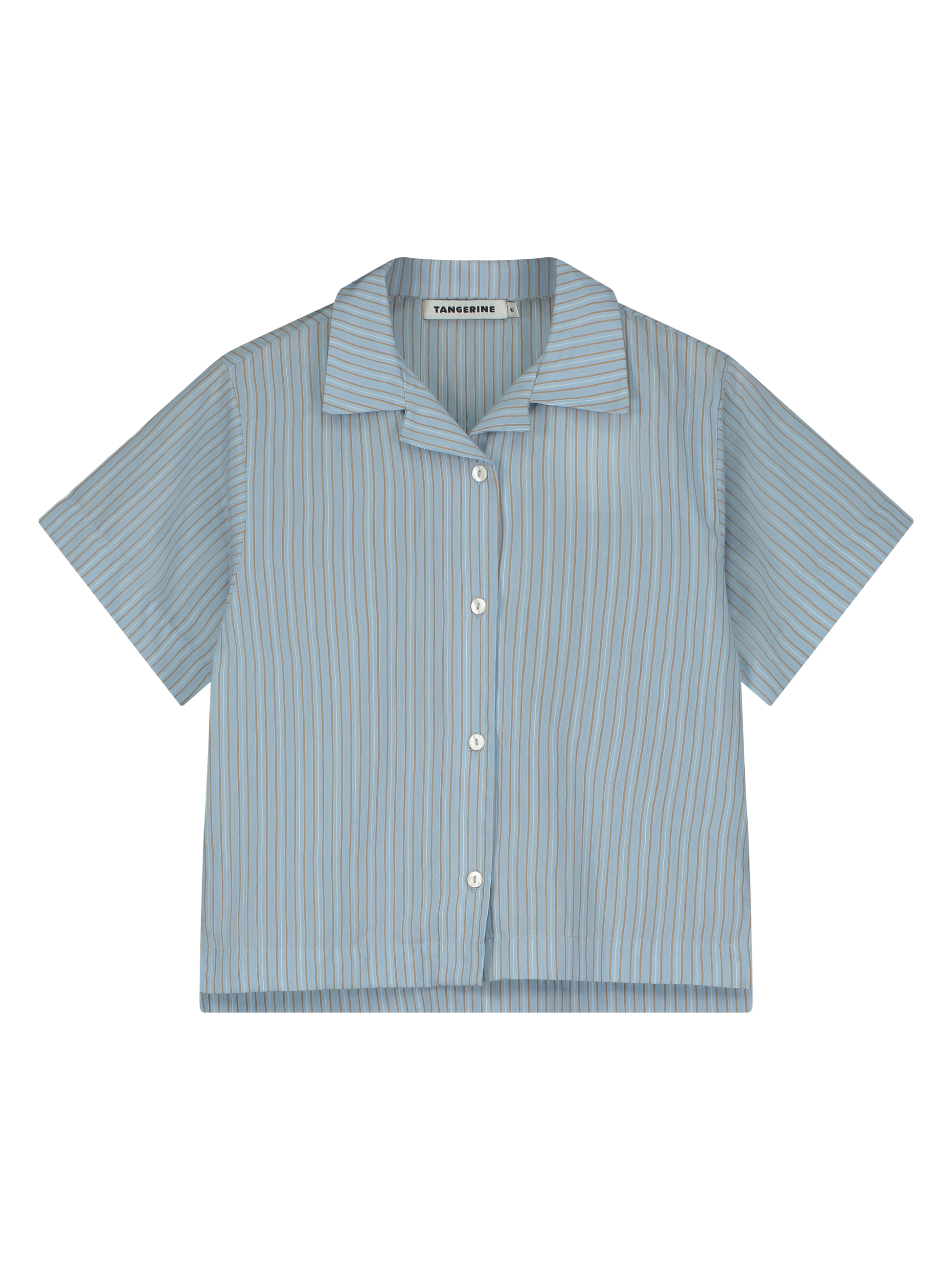 Short sleeved bowling shirt made from lyocell, styled with boxy fit, button closure and polo hem.