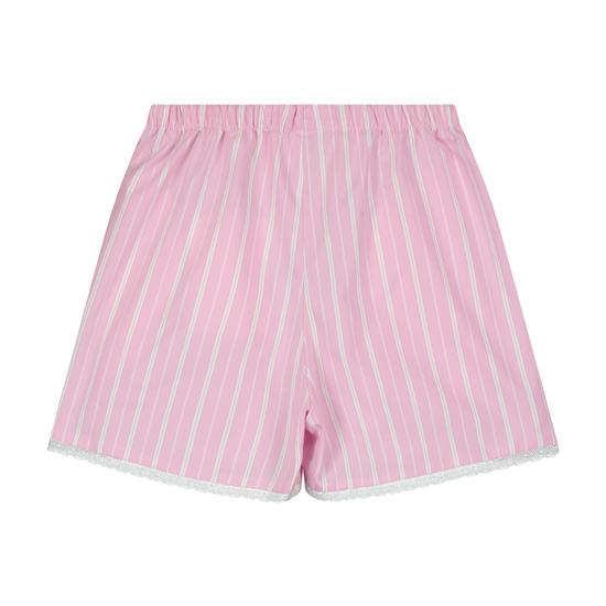 Loose fit short made from cotton blend styled with a hem-lace trim, elasticated waistband and two side pockets.