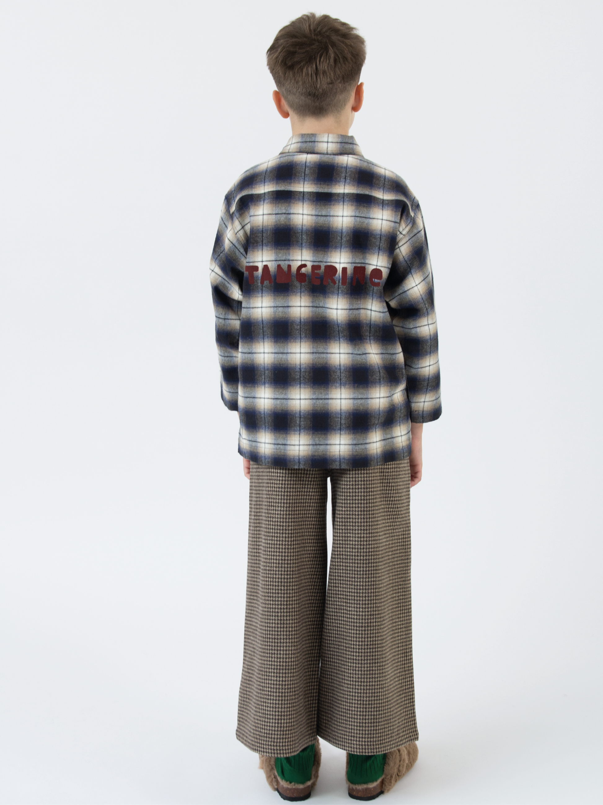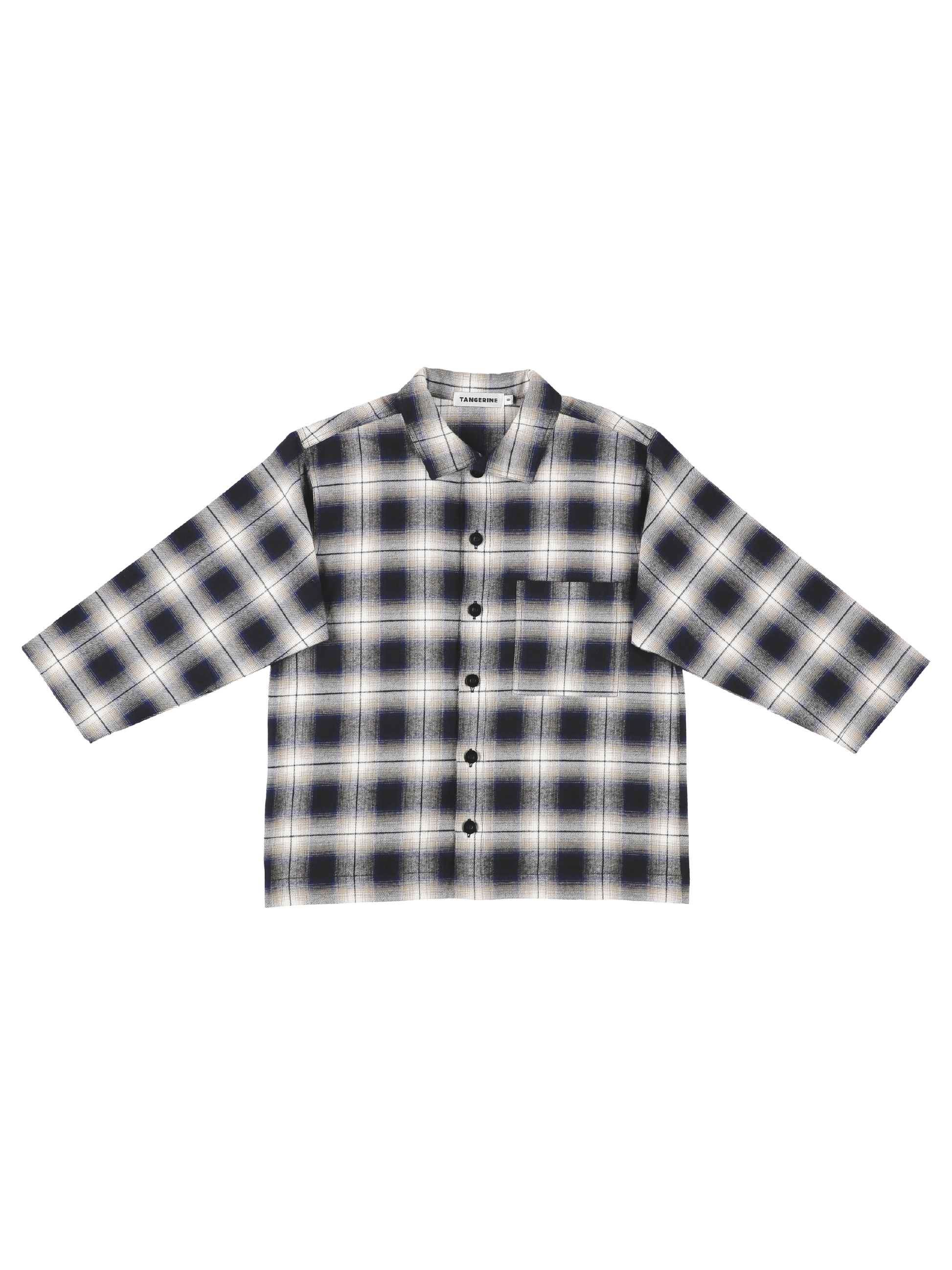 Long-sleeved boxy fit overshirt with fantôme check, single chest pocket and button closure. Embellished with printed mesh Tangerine logo and straight hem.