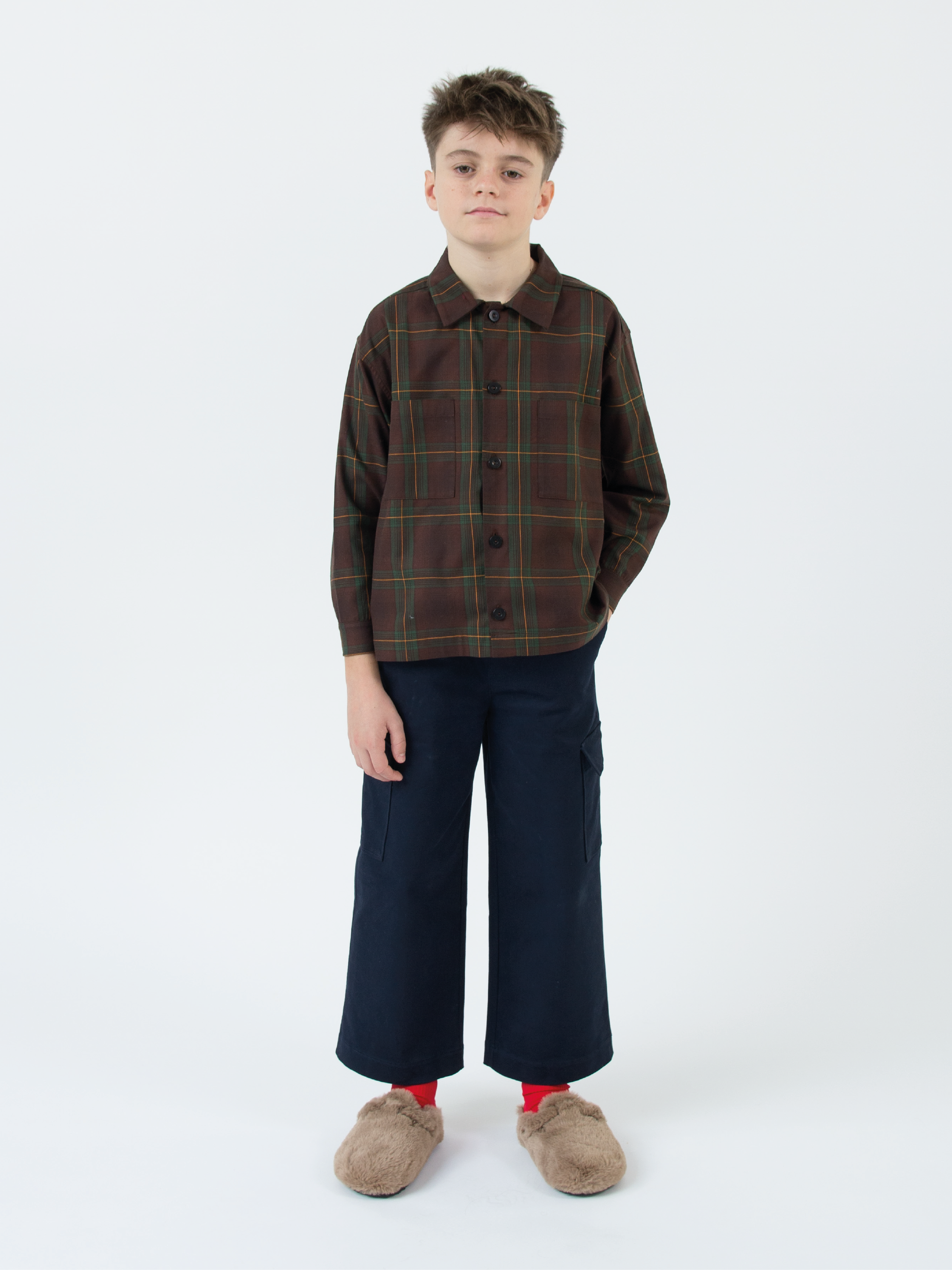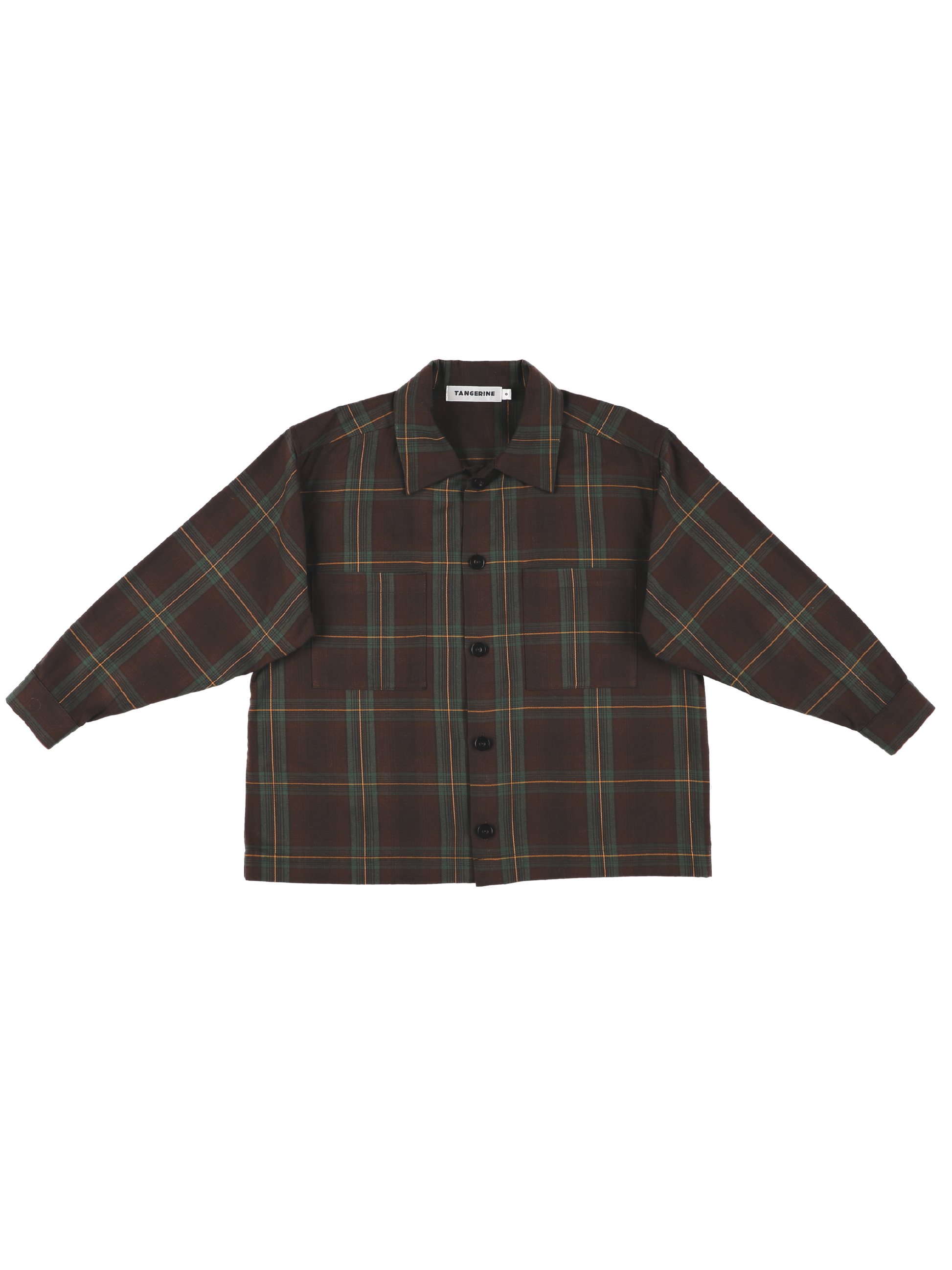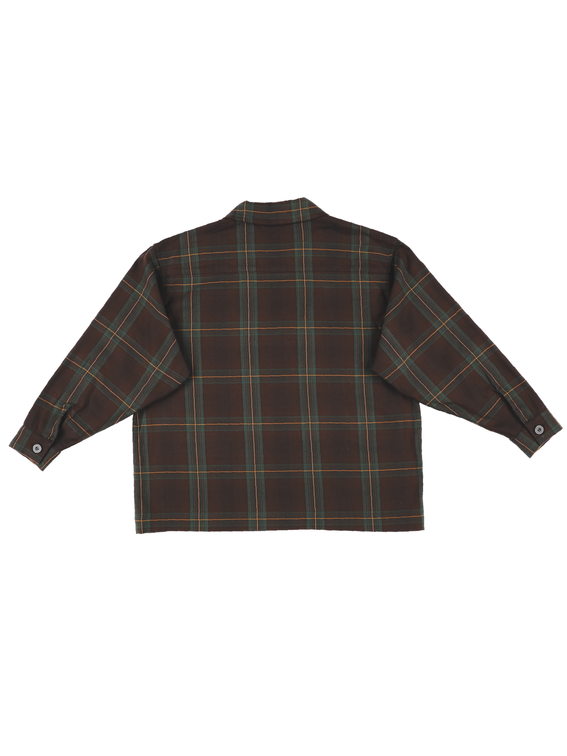 Long-sleeved boxy fit shirt with mirage wax check, double chest pocket, button closure and buttoned cuffs. Straight hem.
