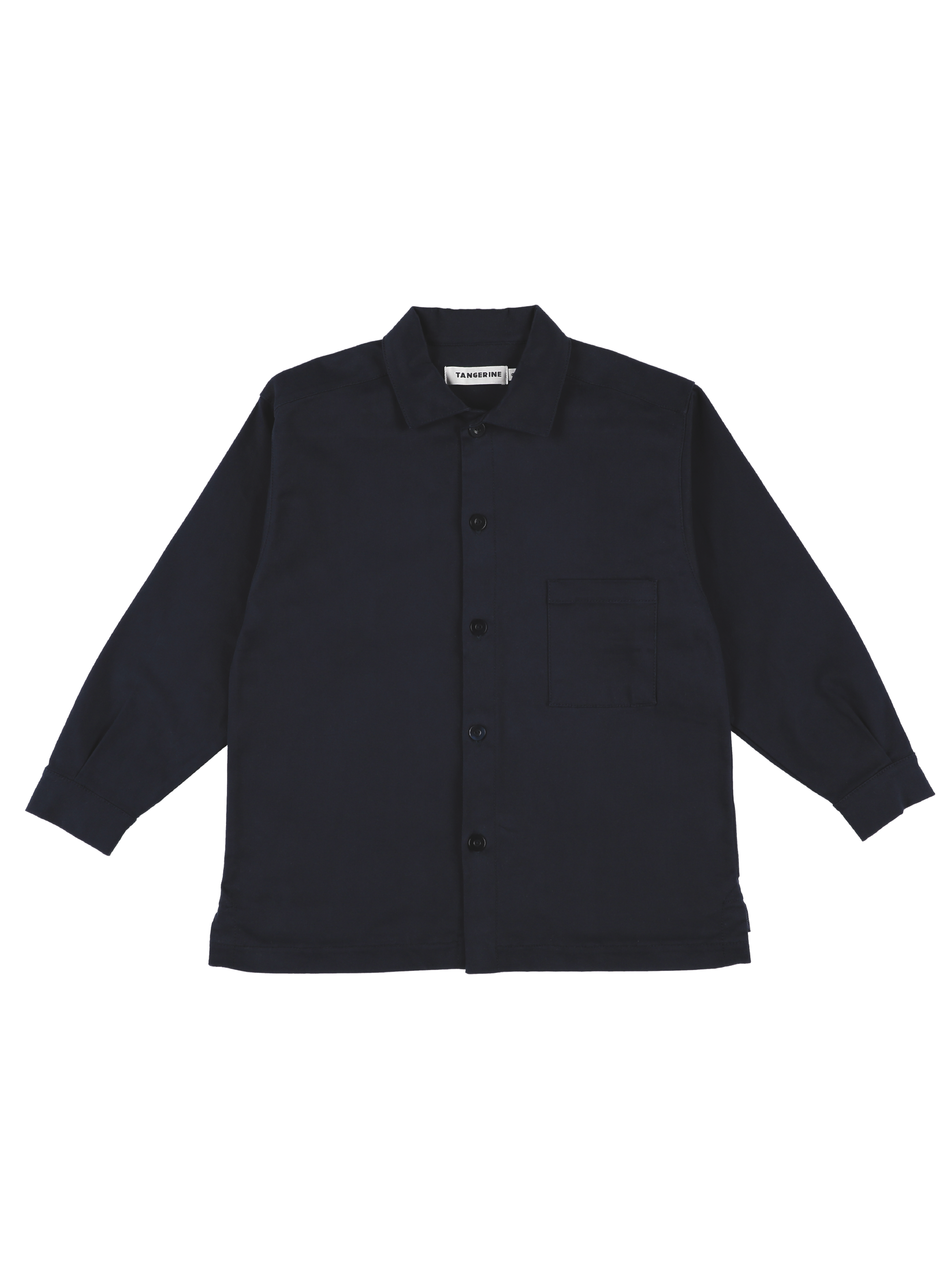 Long-sleeved boxy fit overshirt with chest pocket, button closure and straight hem.