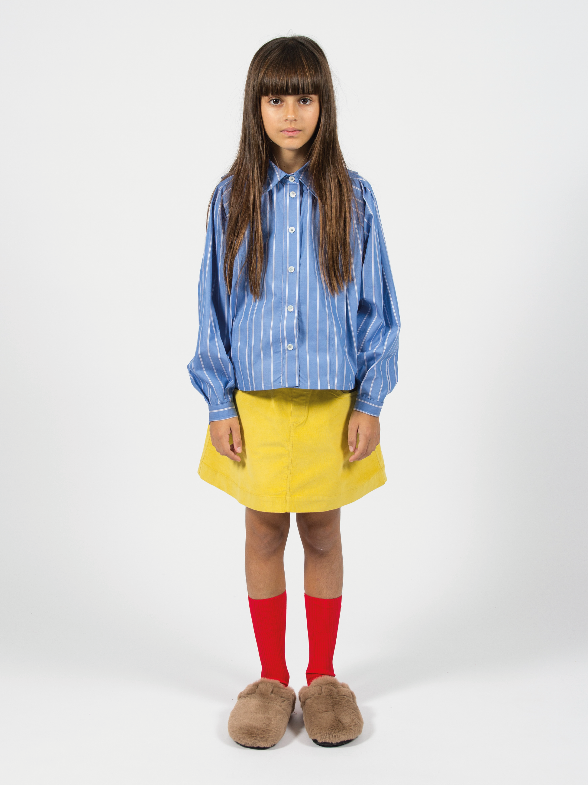 Mini-skirt made from corduroy. Four pocket and styled with an A-line silhouette and elasticated waistband.