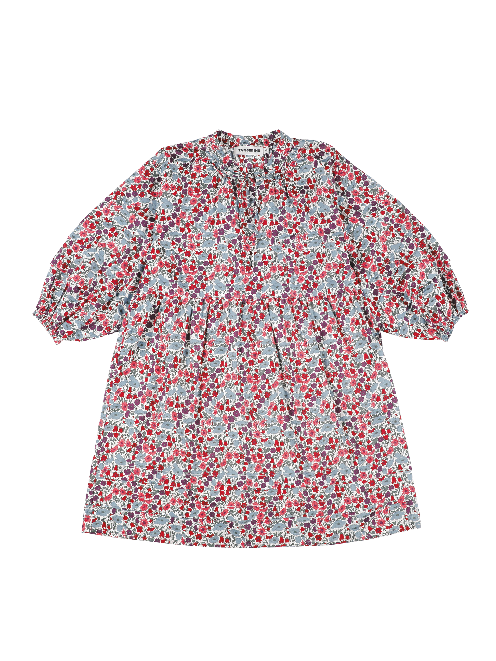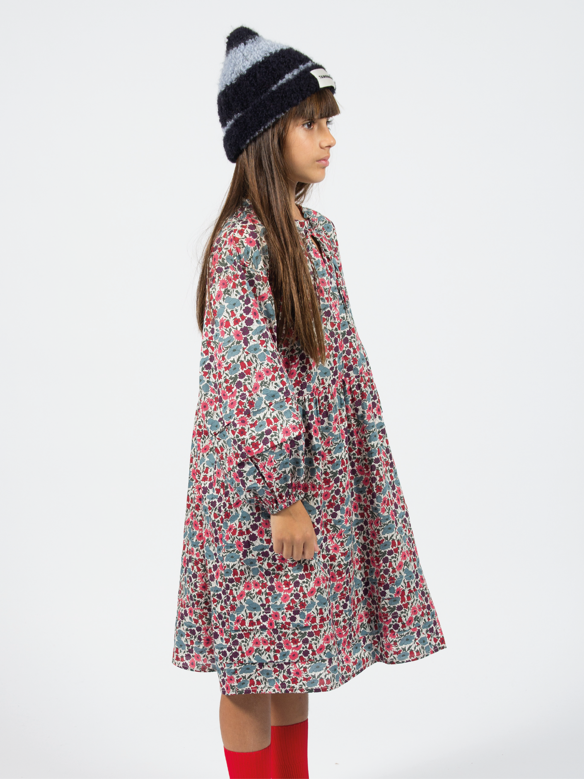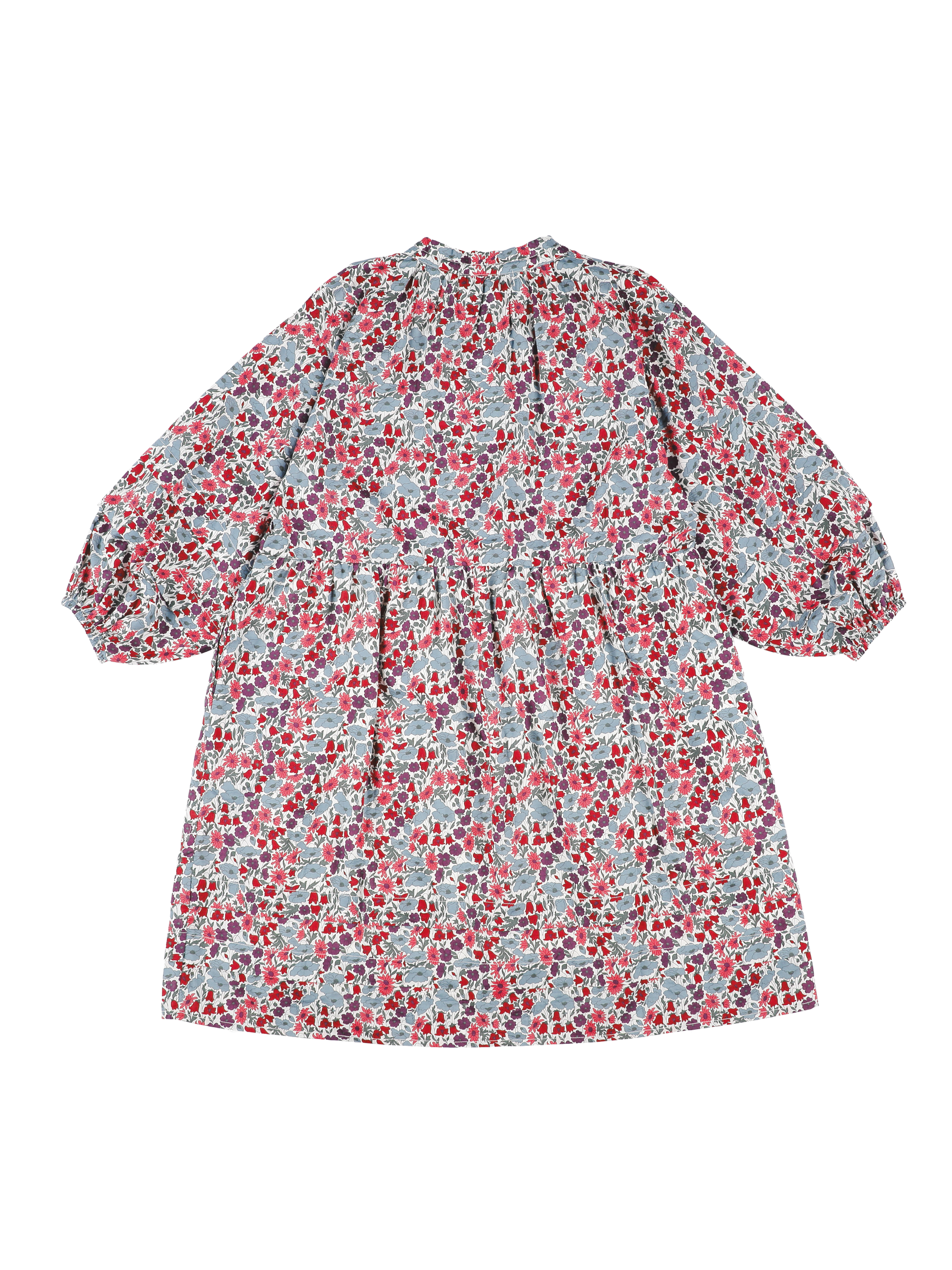 Liberty dress pleated long-sleeves and hem. Tied neckline closure and evasé fit. Lined.