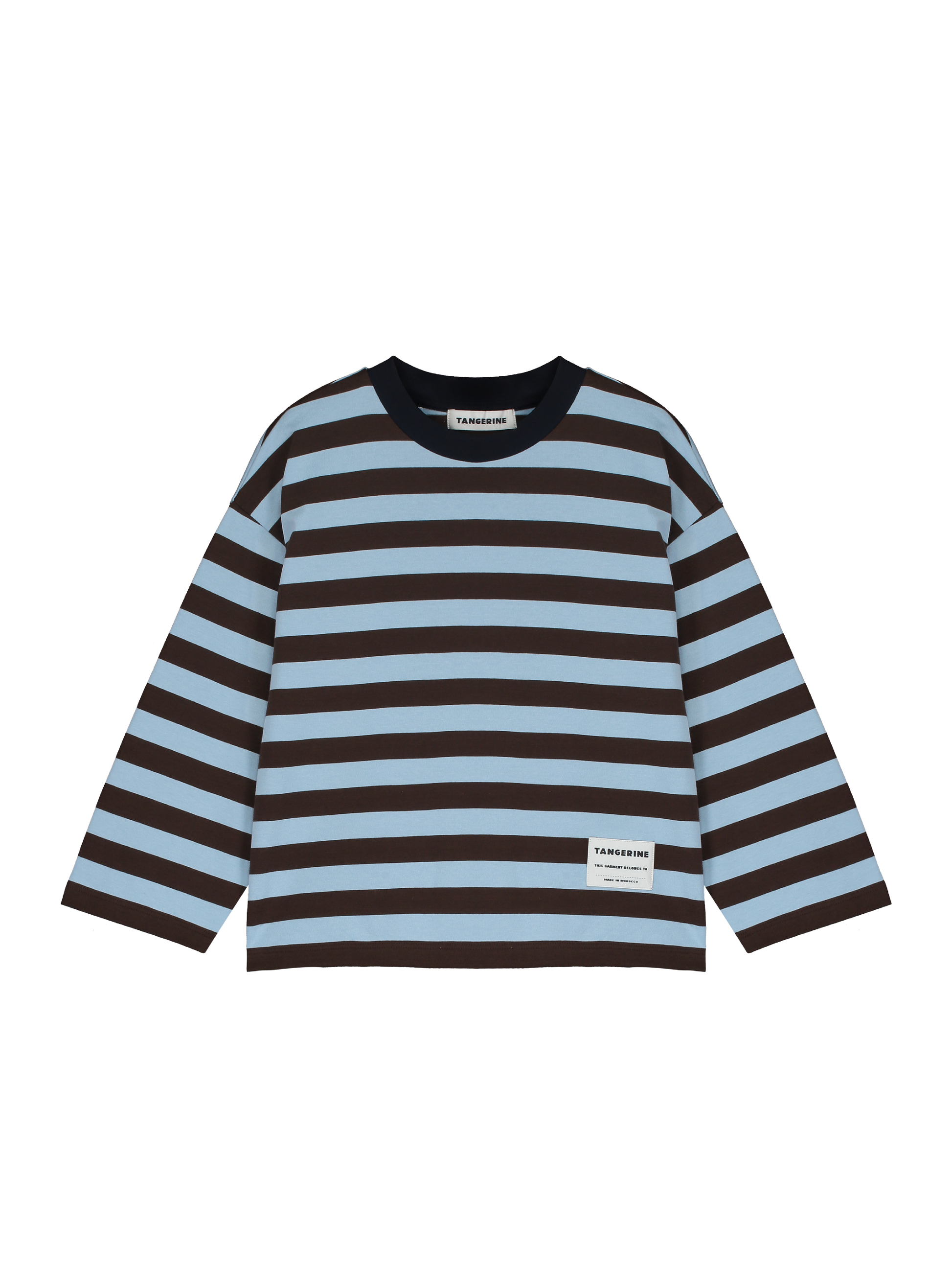 Light Blue / Brown Striped Long-Sleeved T-Shirt