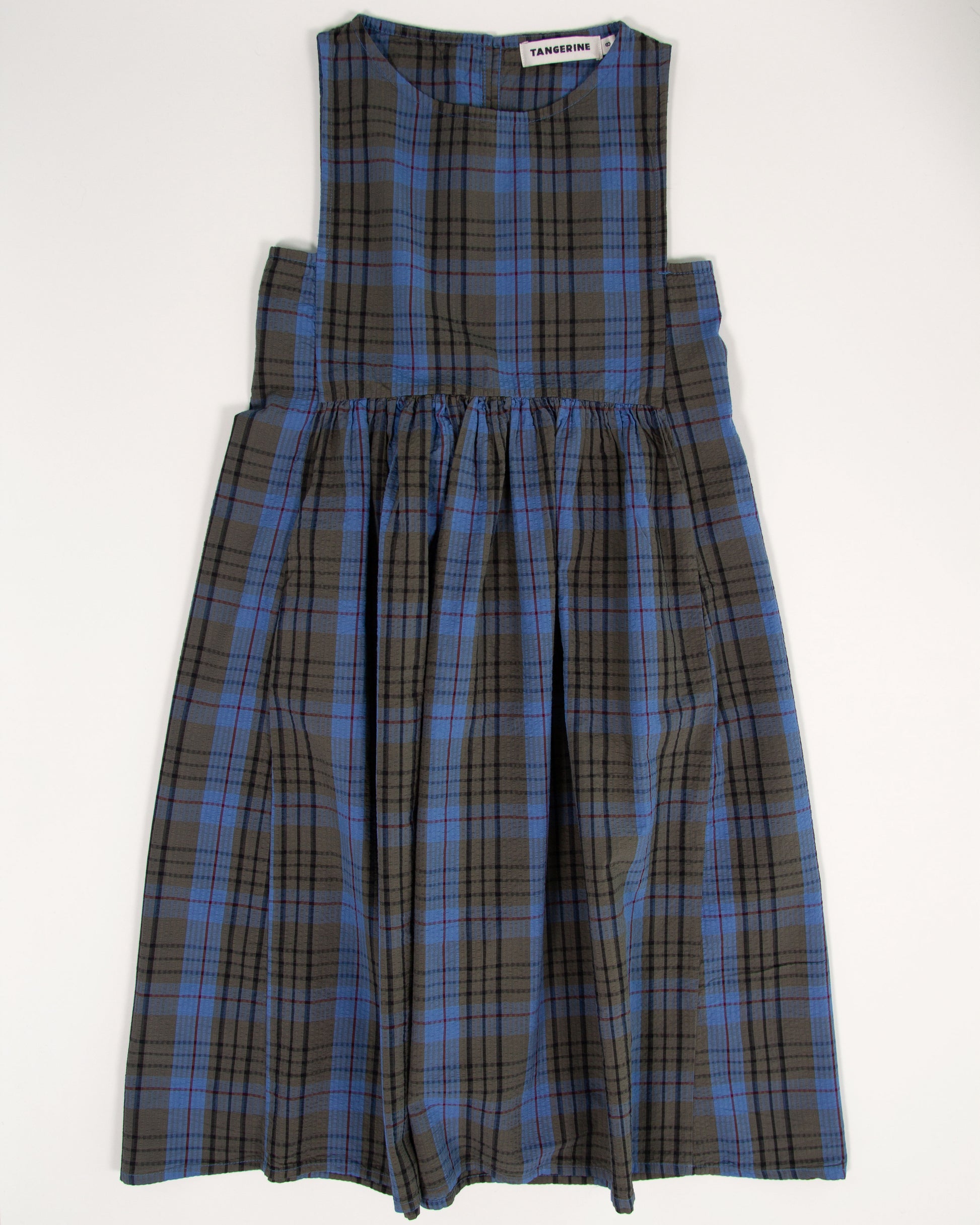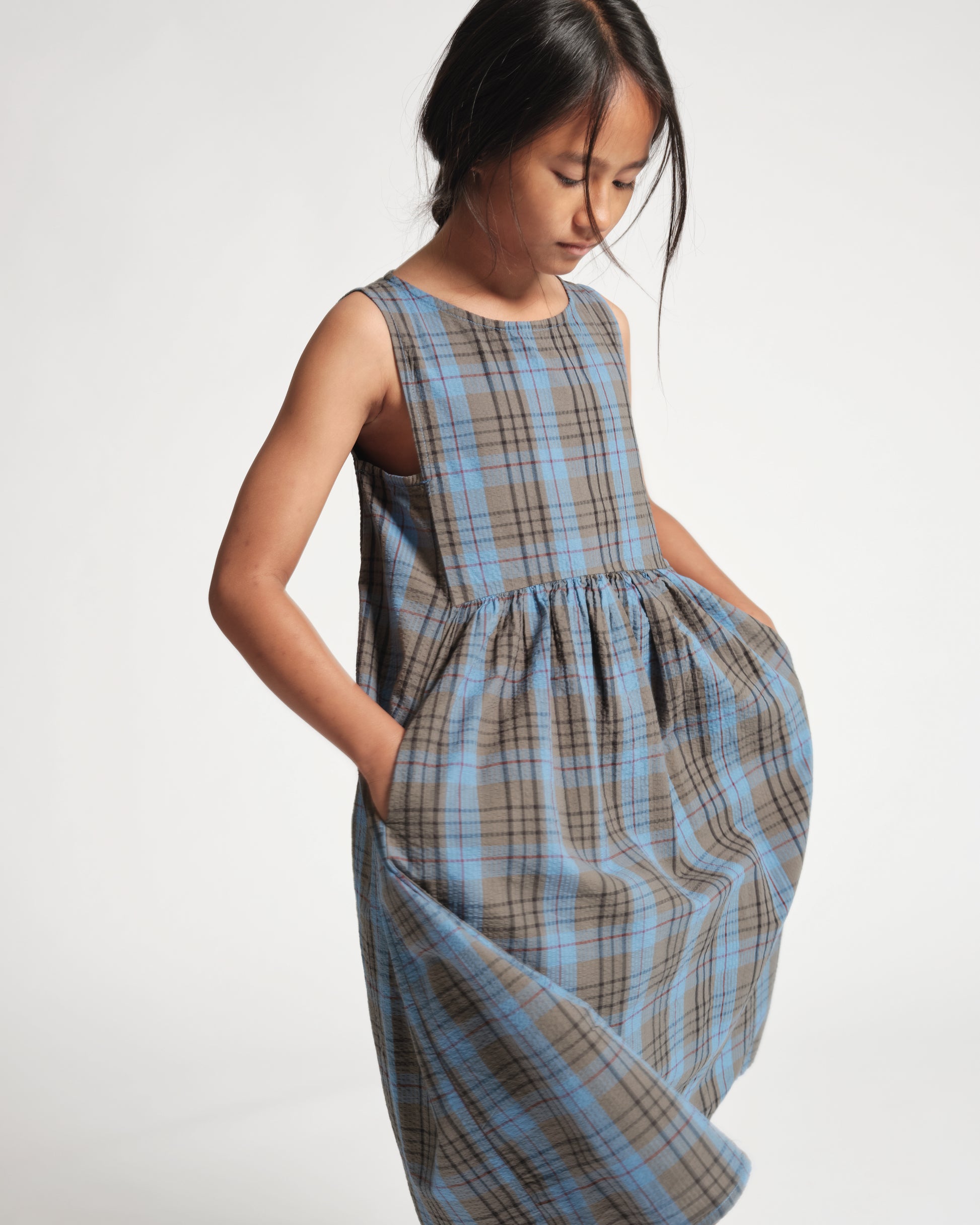 Regular fit dress with made from plaid cotton fabric with a cut on the waist and two inseam pockets. Garment dyed.