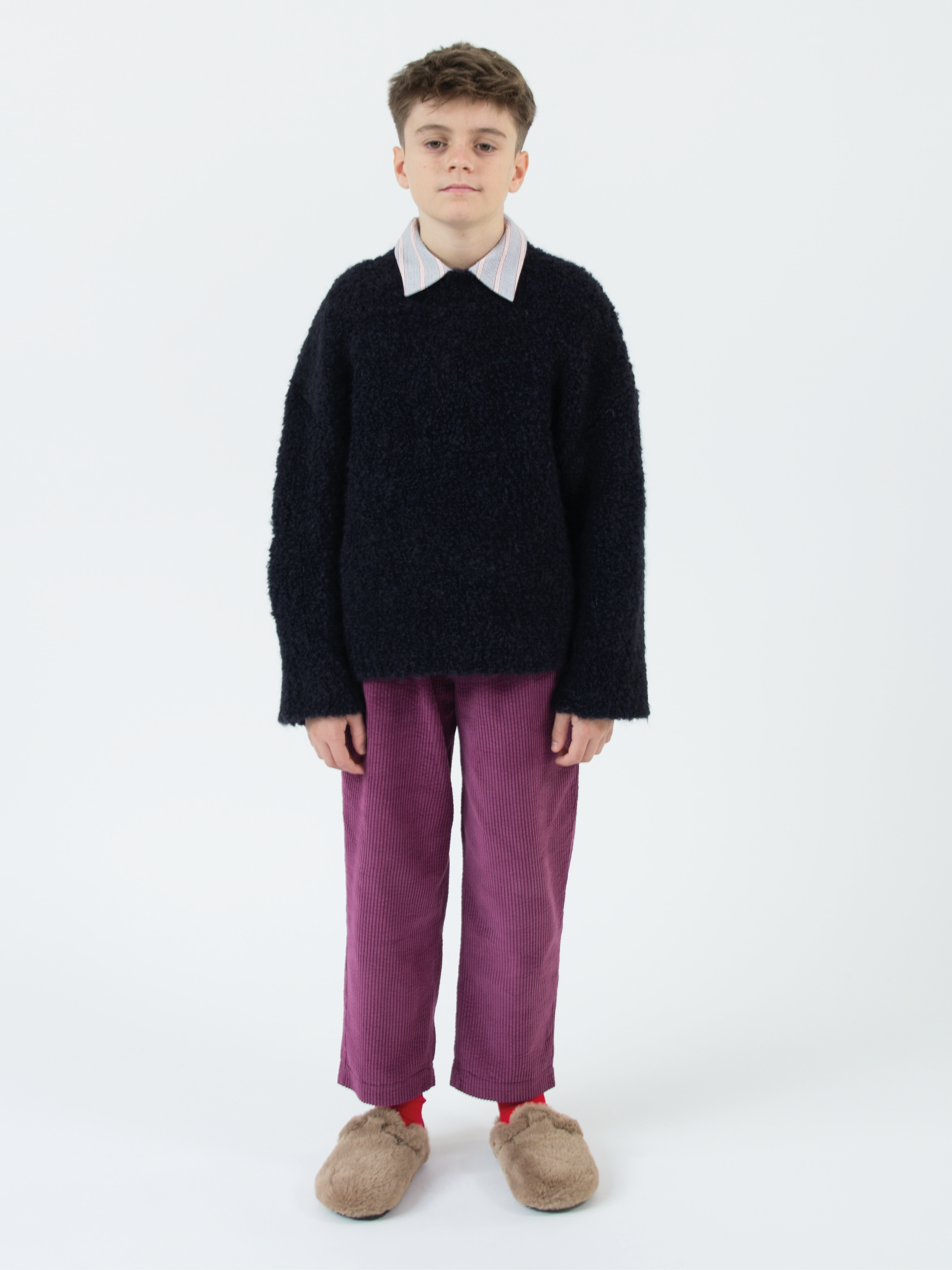 Relaxed-fit knitted sweater crafted from mohair blend. Long sleeves and crew neck.