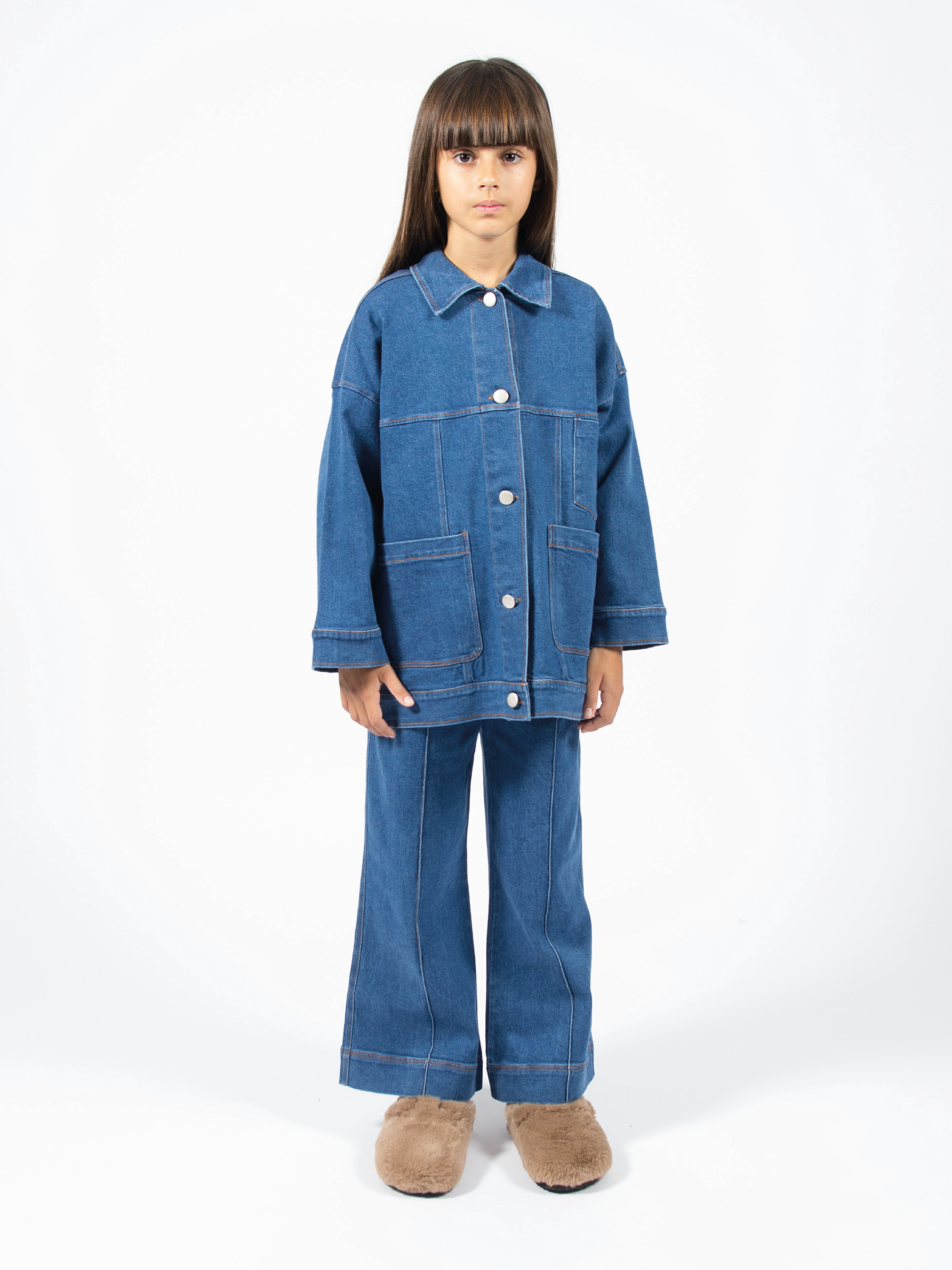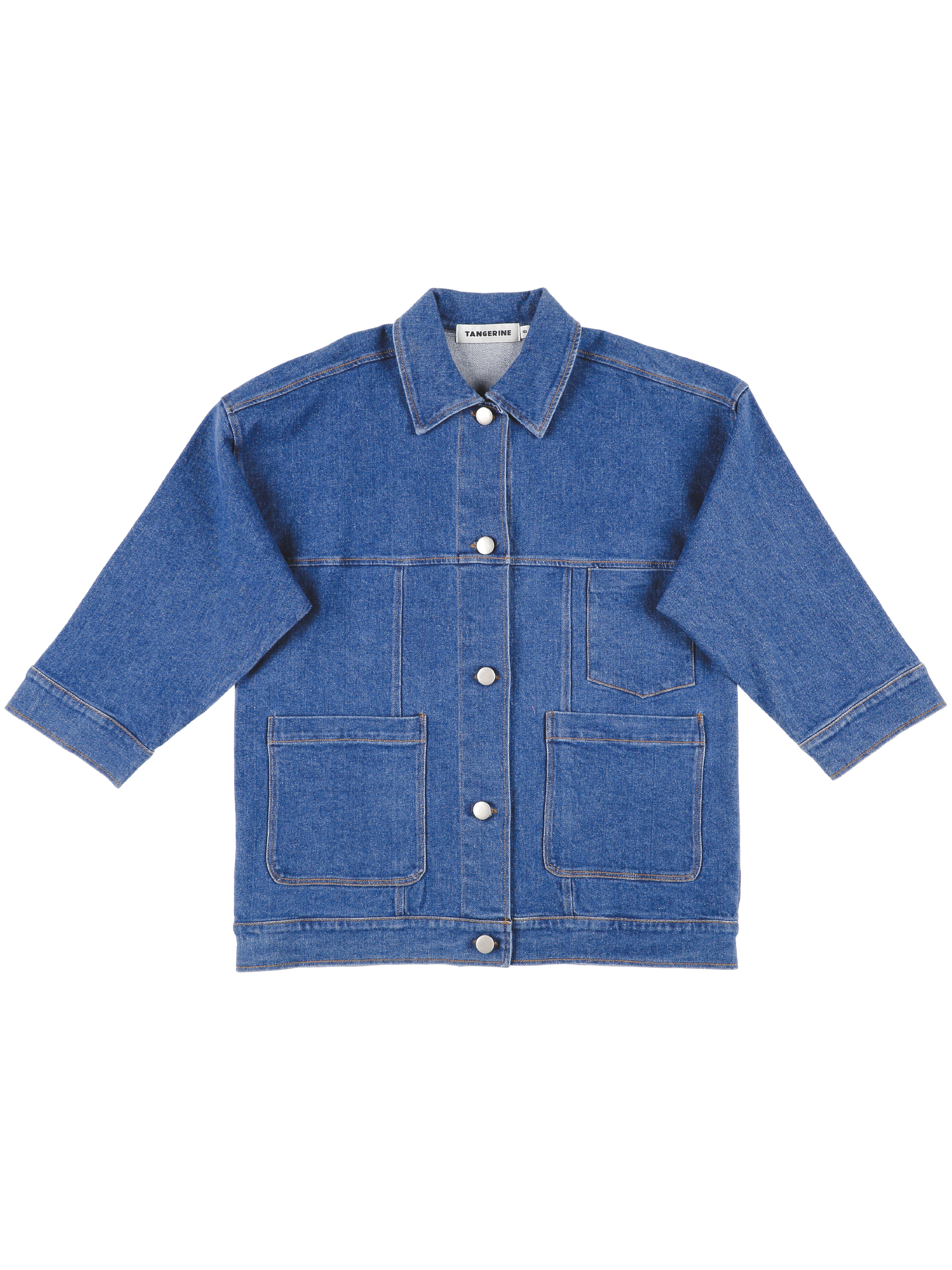 Jacket made from stone washed indigo denim. One side pocket on the chest and two side patch pockets.