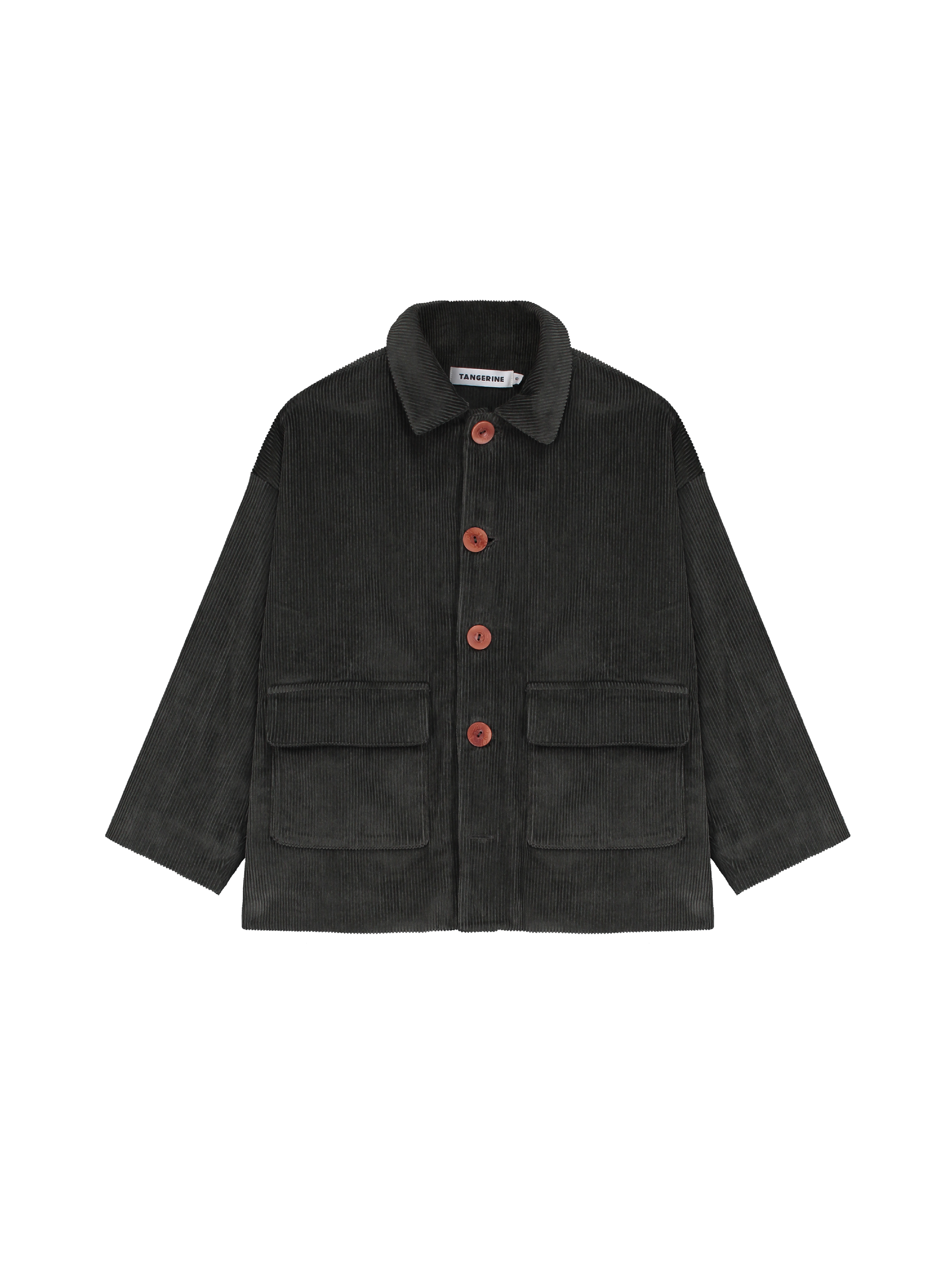 Oversized jacket made from corduroy with regular collar, garment washed, single breasted closure with classic flap pockets and stitched vintage Tangerine label. Lined with interior pocket.