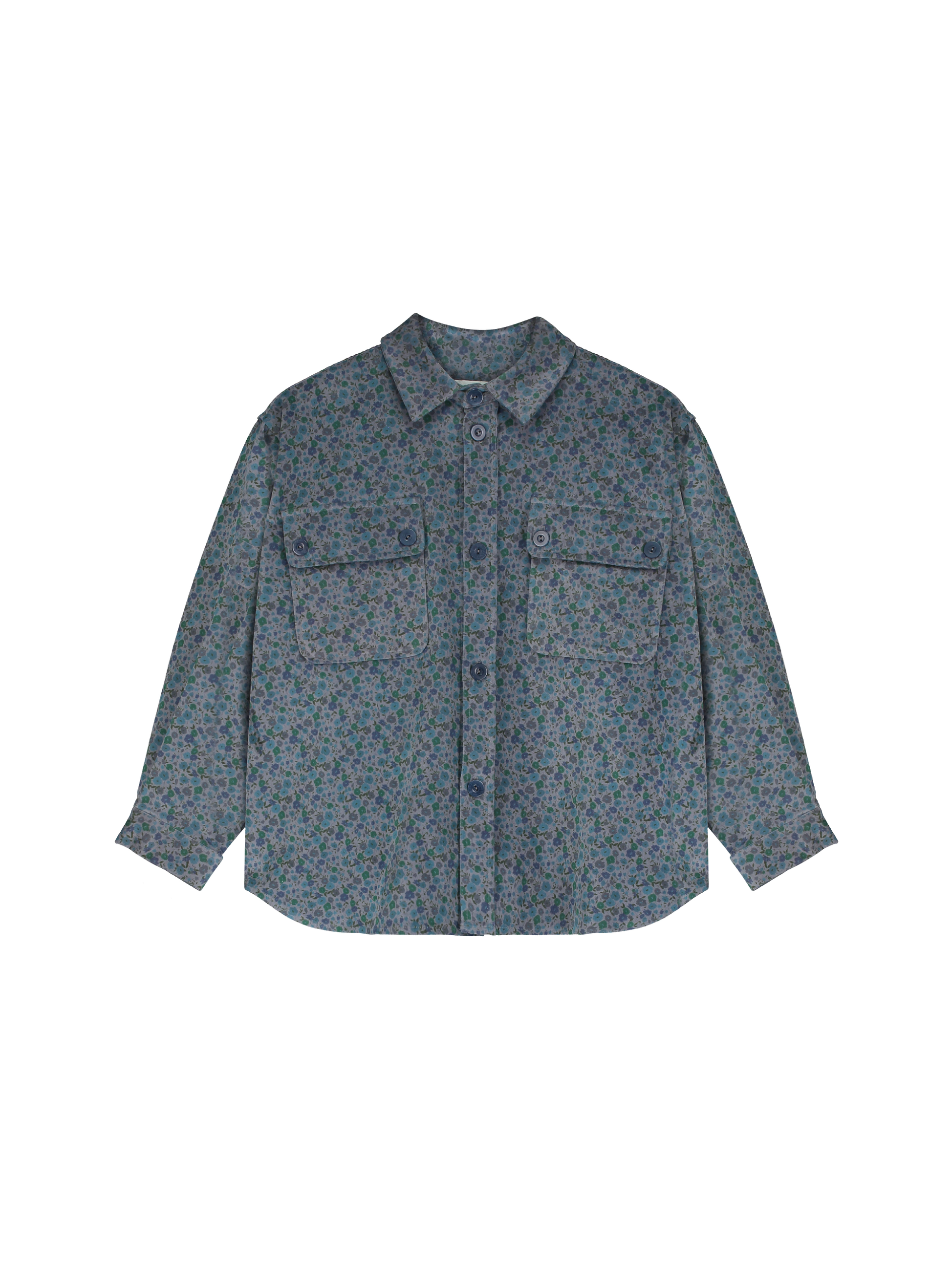 Overshirt made from corduroy embellished with this season print. Oversized fit with button closure, styled with two chest pockets and buttoned cuffs. Weave-dyed.