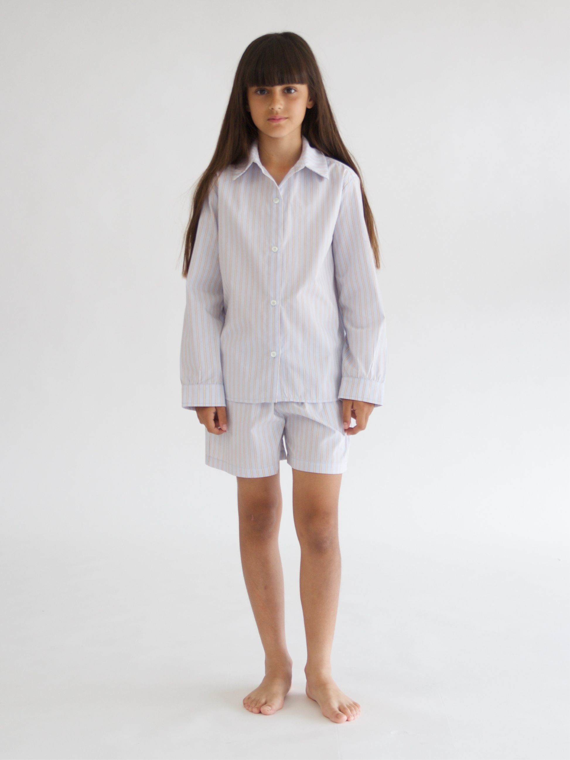 Long sleeved striped shirt with oversized fit, button closure styled with buttoned cuffs and rounded hem.