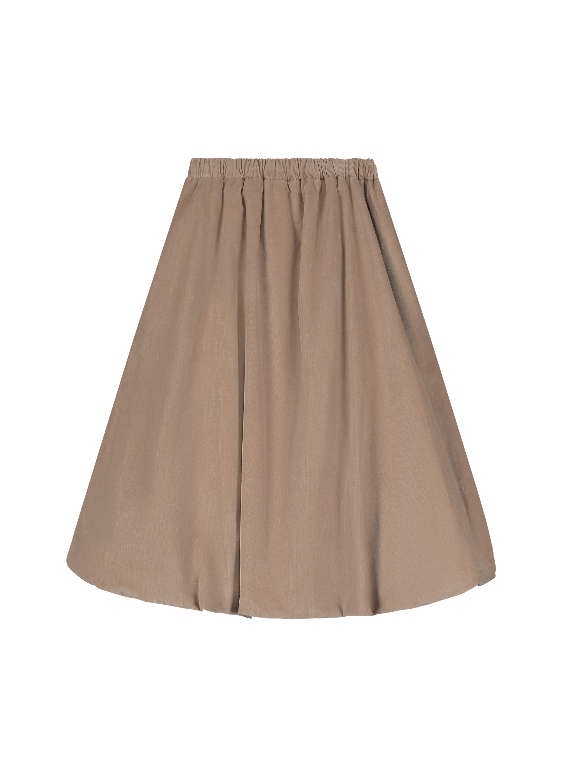 Midi puff ball skirt made from corduroy. Styled with two side pockets and elasticated waistband. Lined.