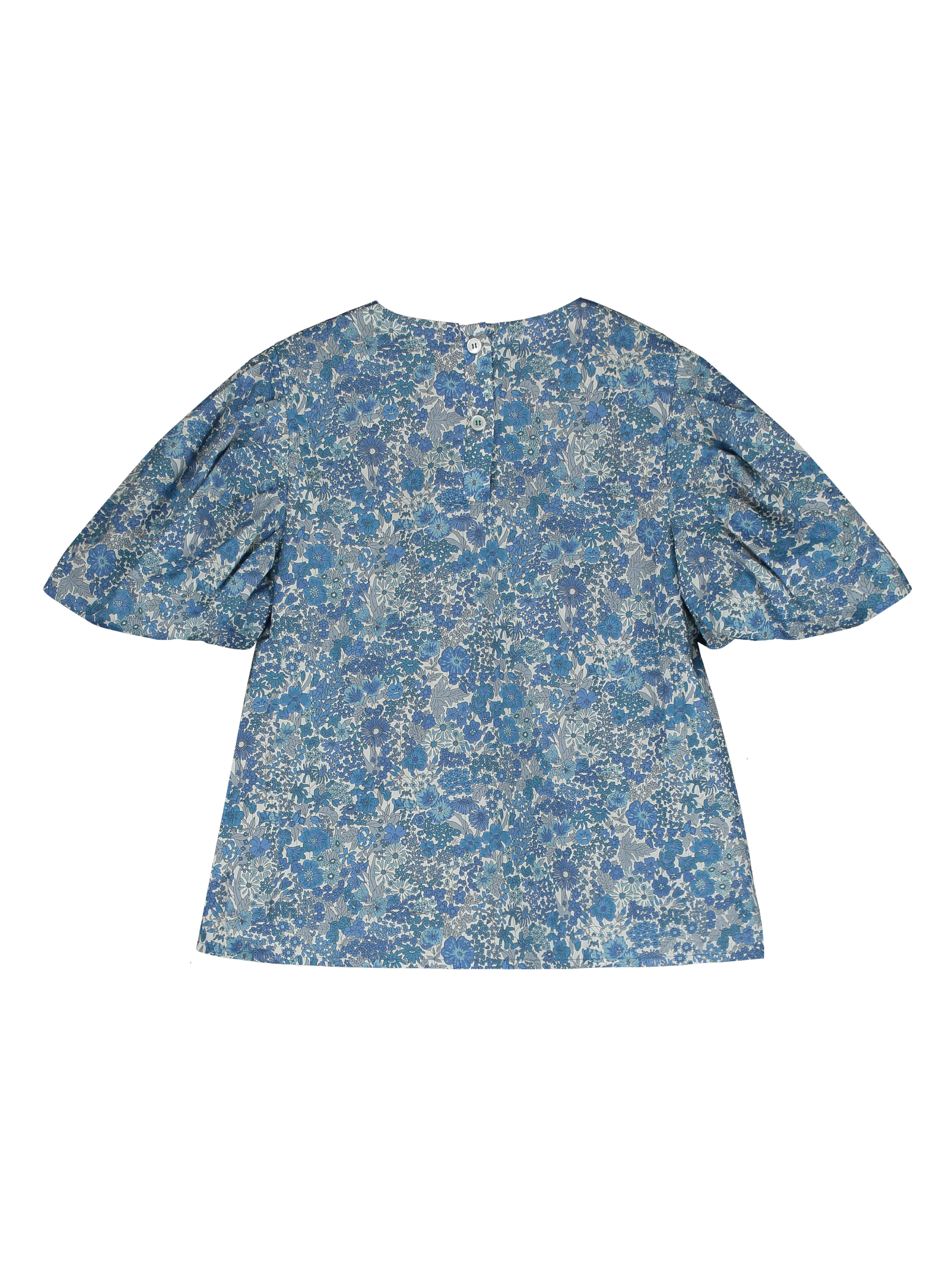 Puffed sleeve liberty cotton blouse made from death-stock, styled with a regular fit and back button closure. Lined.