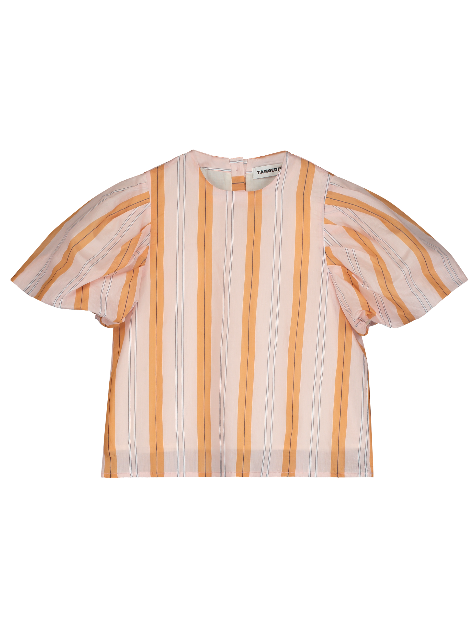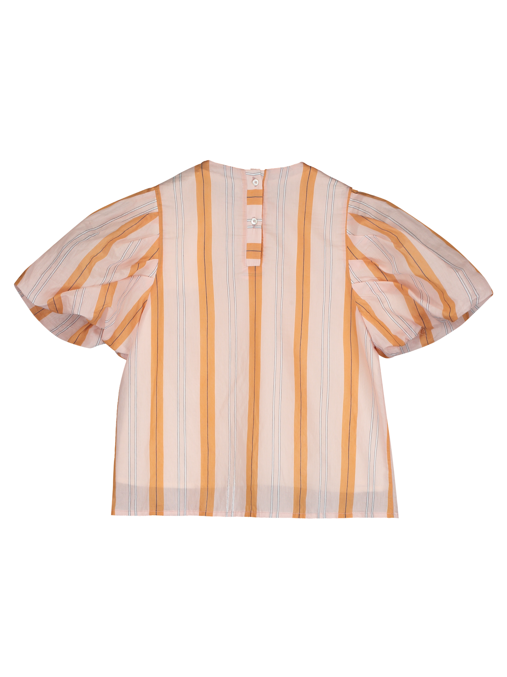 Puffed sleeve striped blouse, styled with a regular fit and back button closure. Lined.