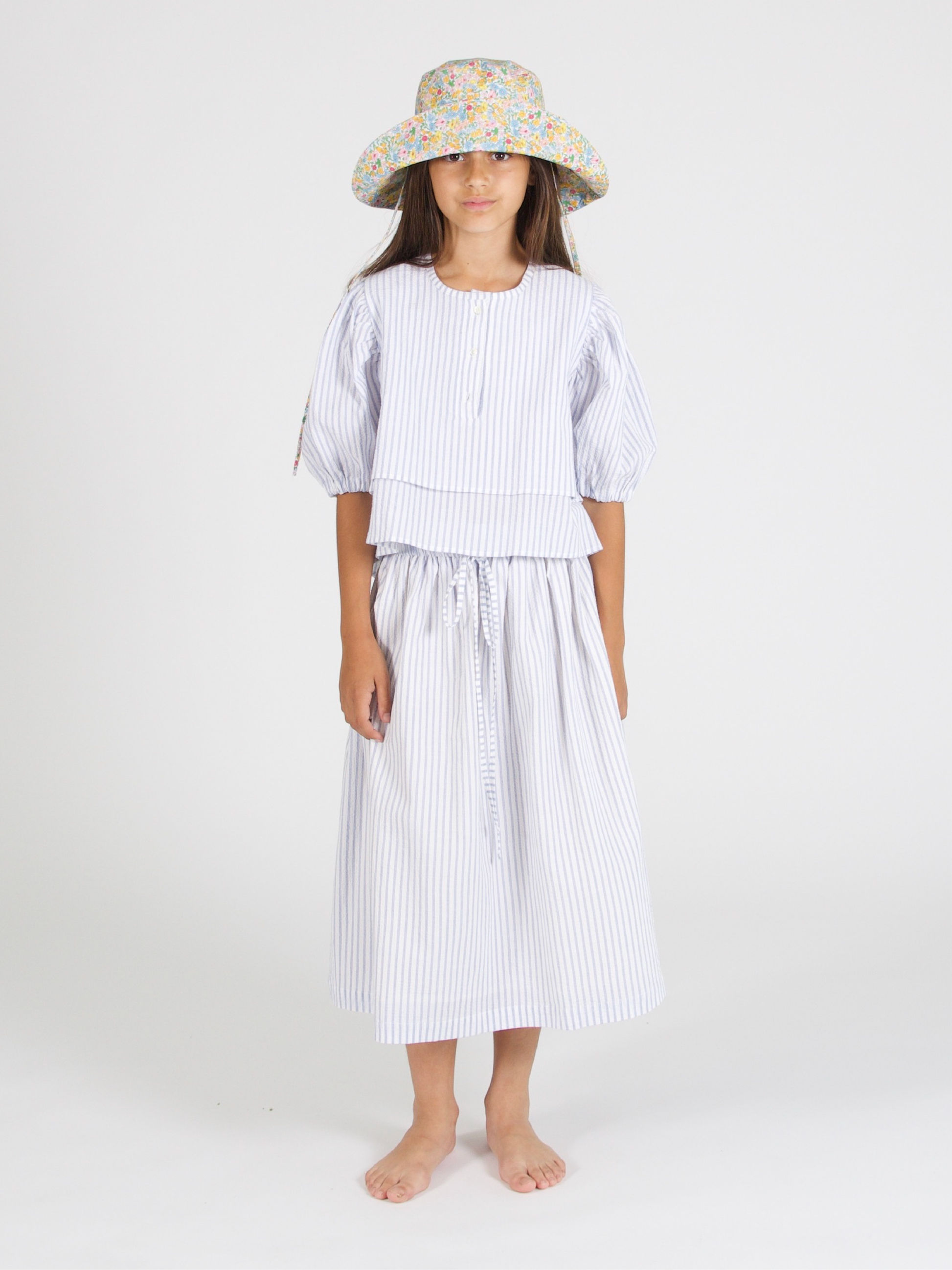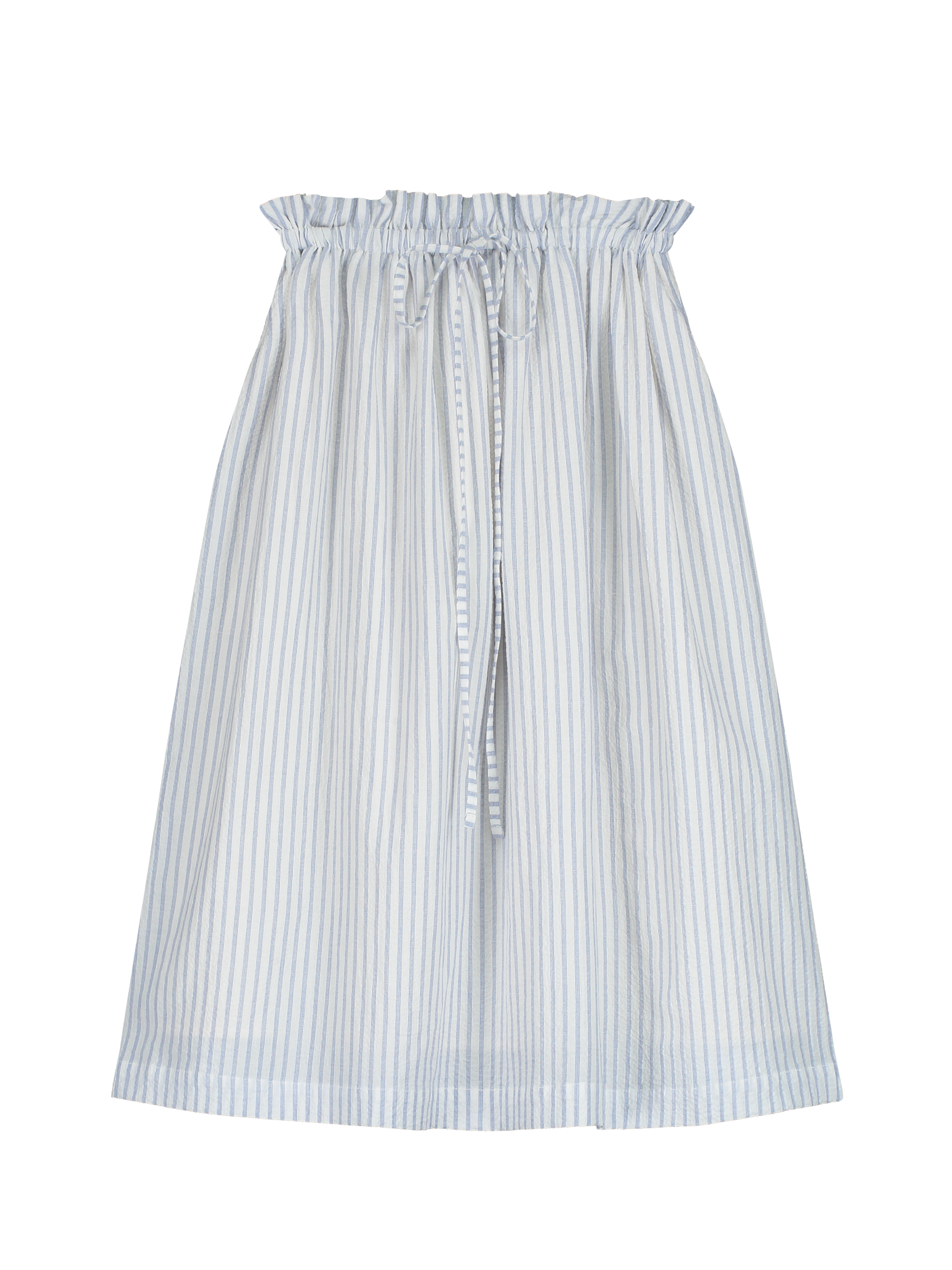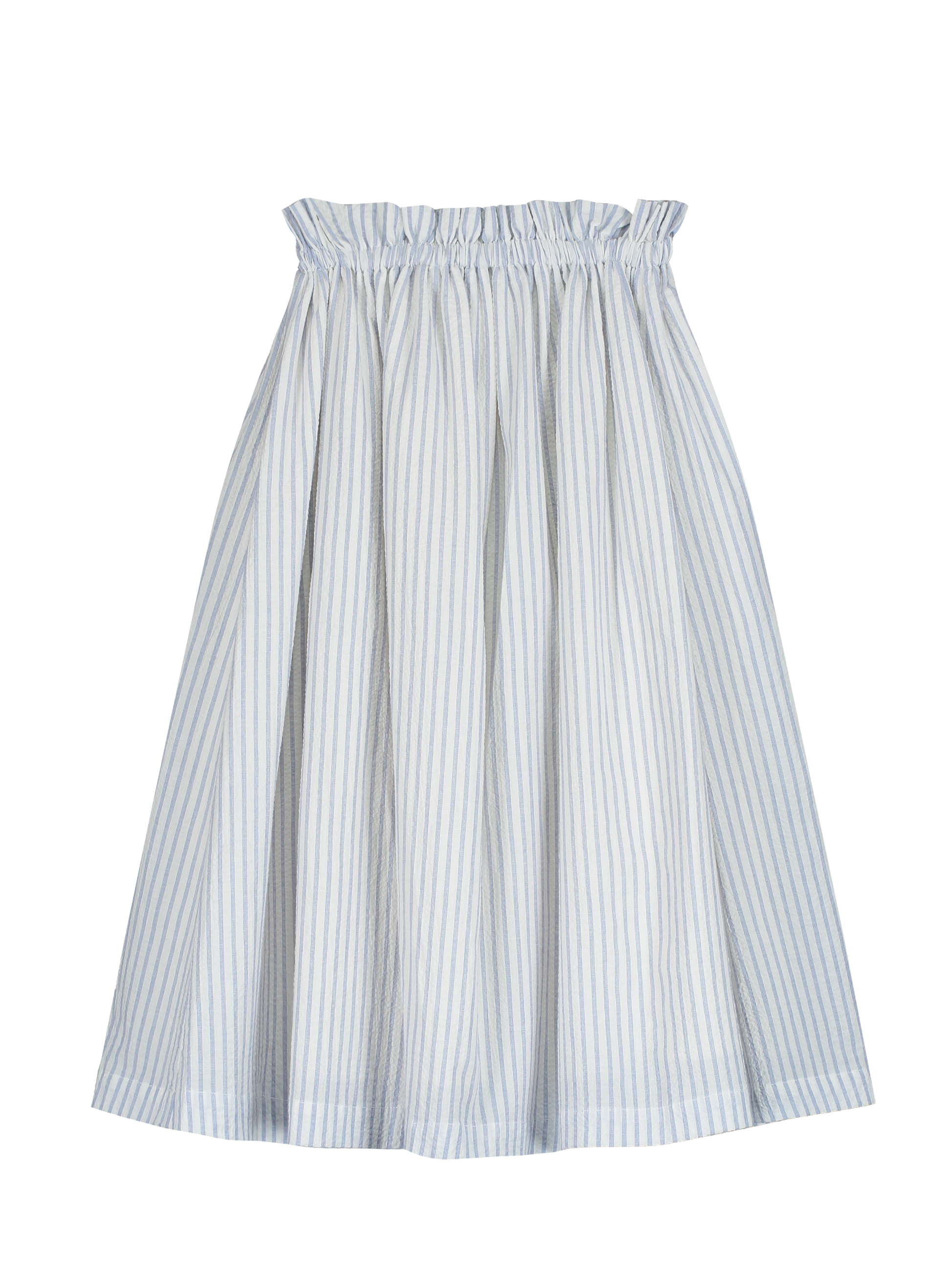 Midi skirt made from seersucker styled with an elasticated waistband and two side pockets. Lined.