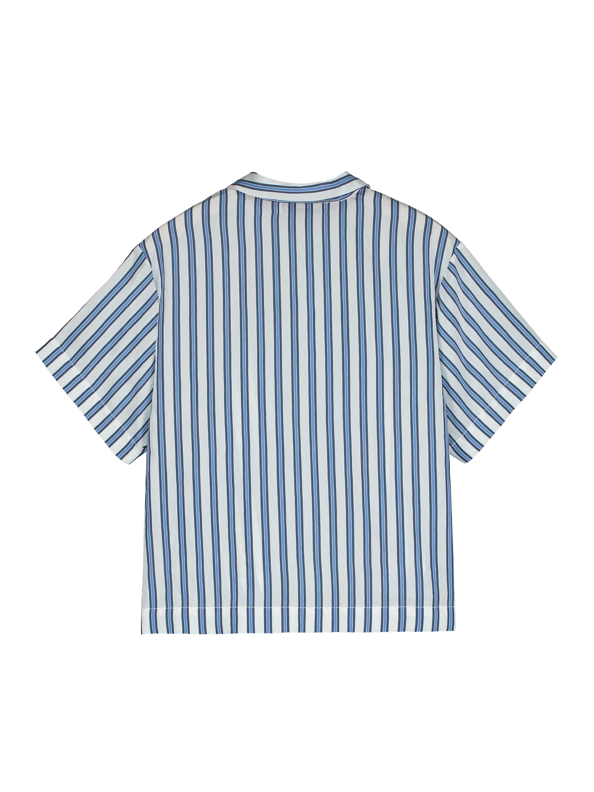 Short sleeved bowling shirt styled with boxy fit and chest pocket, button closure and polo hem.