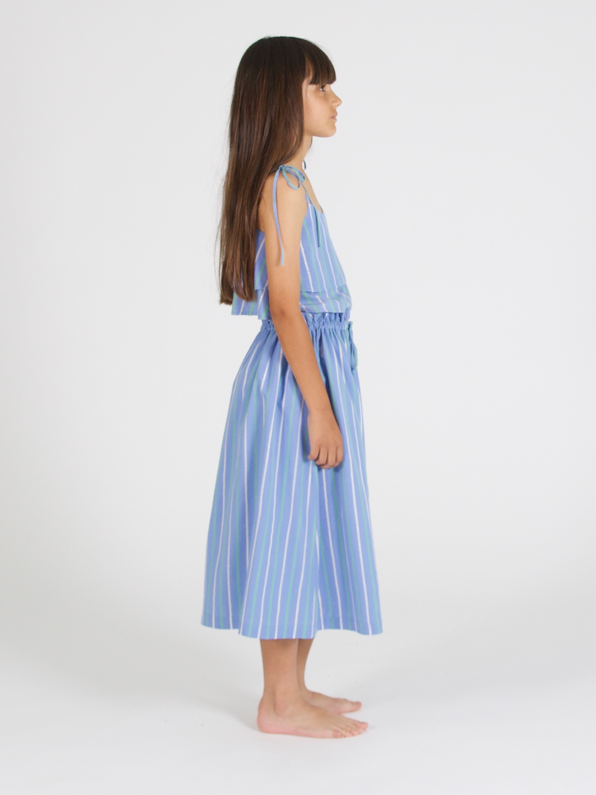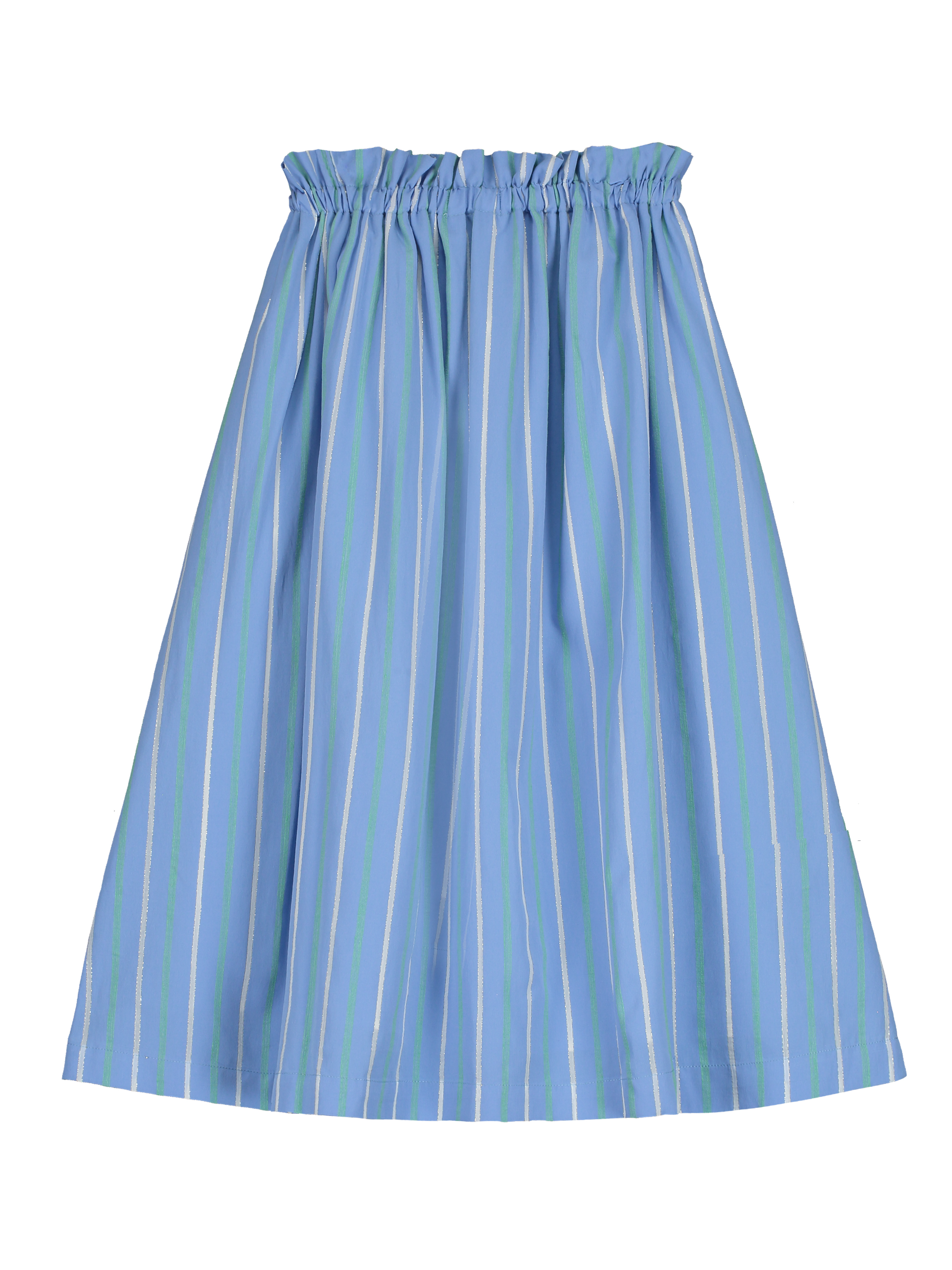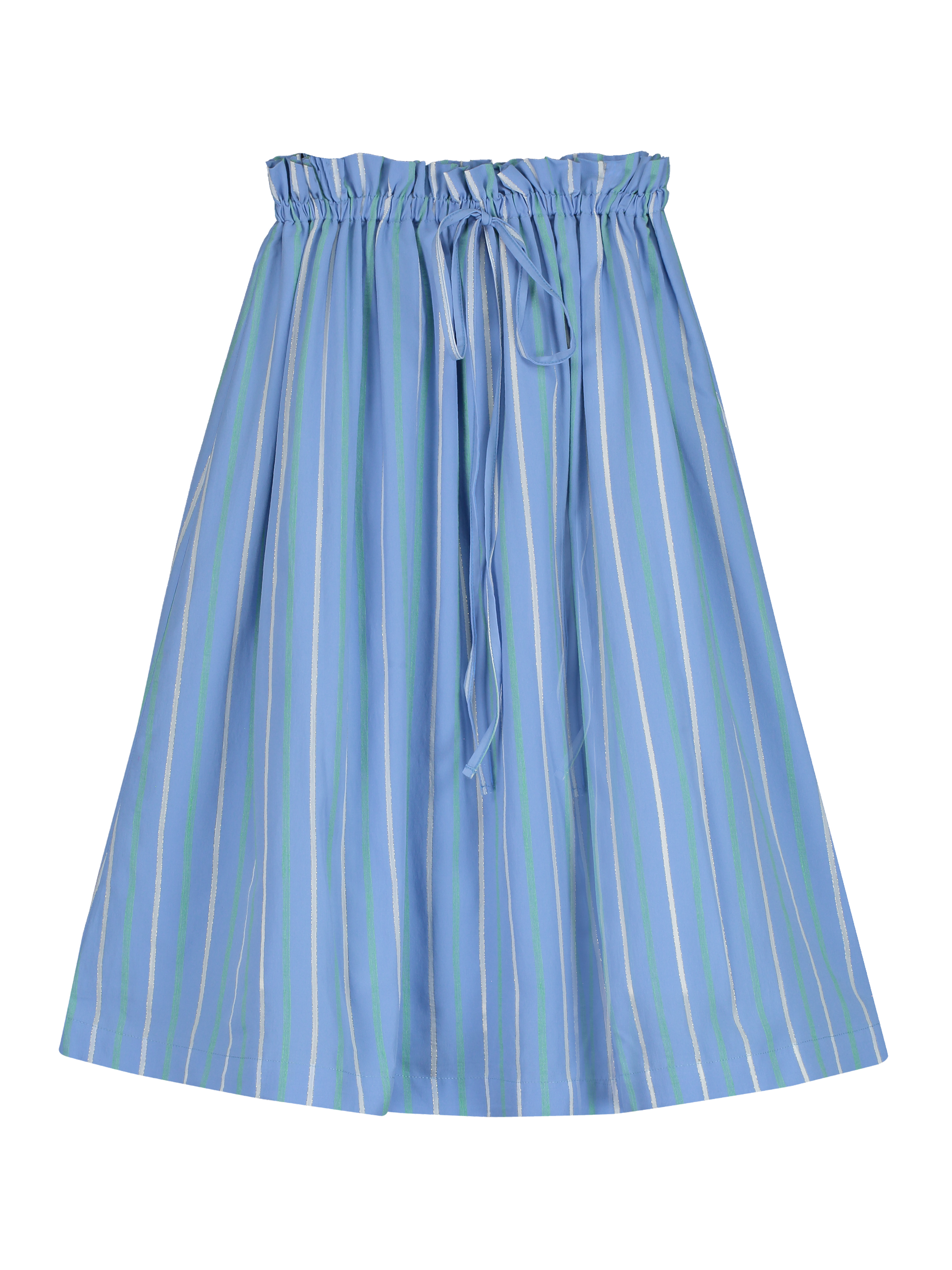 Midi skirt made from striped cotton blend styled with an elasticated waistband and two side pockets. Lined.