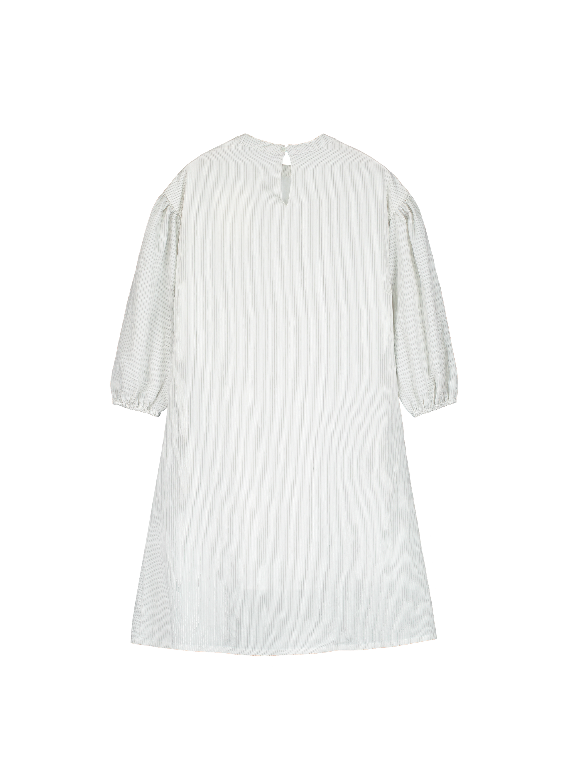 Dress made from cupro blend. Featuring a gathering neckline styled with voluminous sleeves, fitted cuffs and back button closure, two side pockets. Lined.