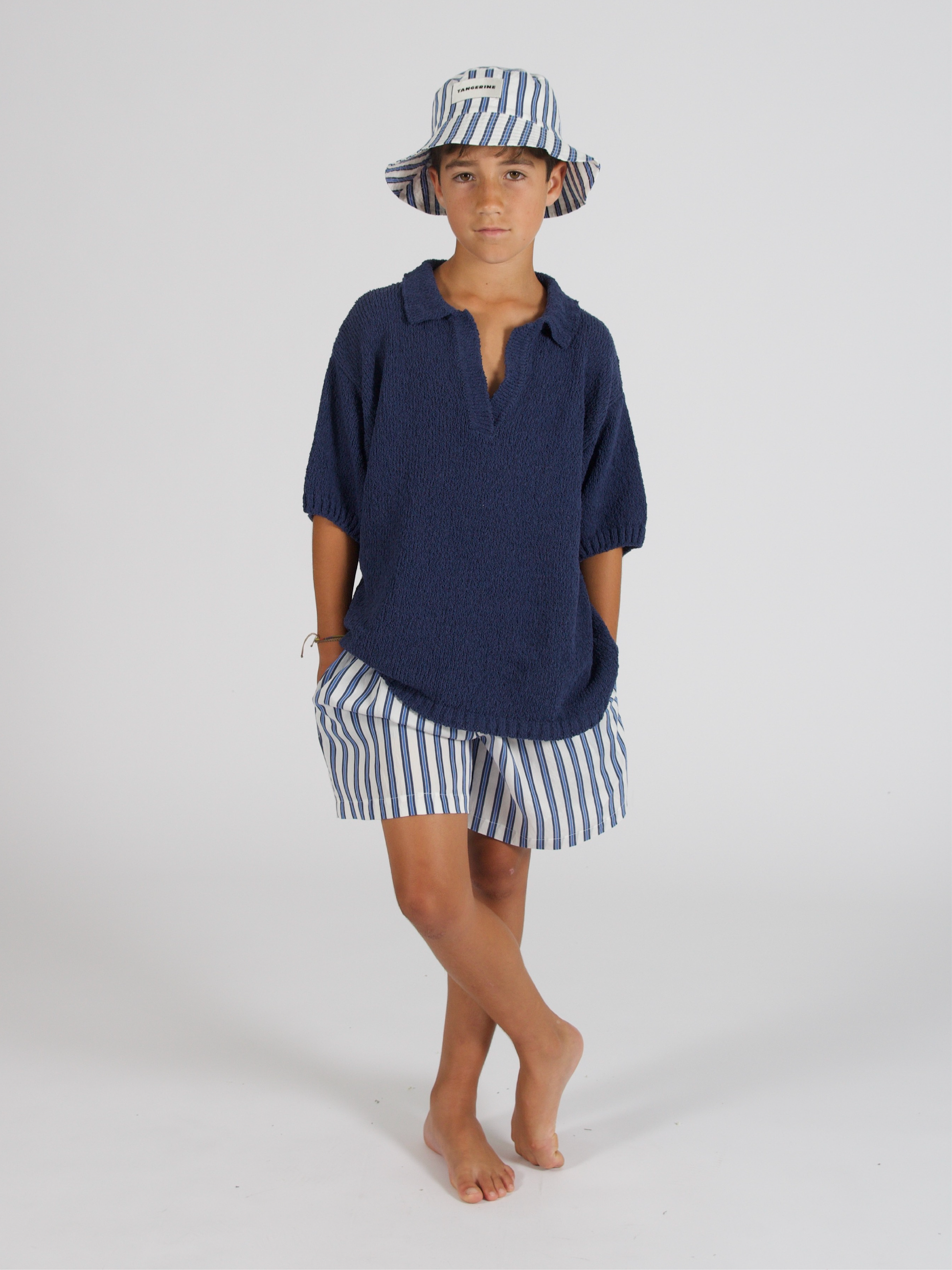 Loose fit striped shorts made from modal styled with two side pockets and elasticated waistband.