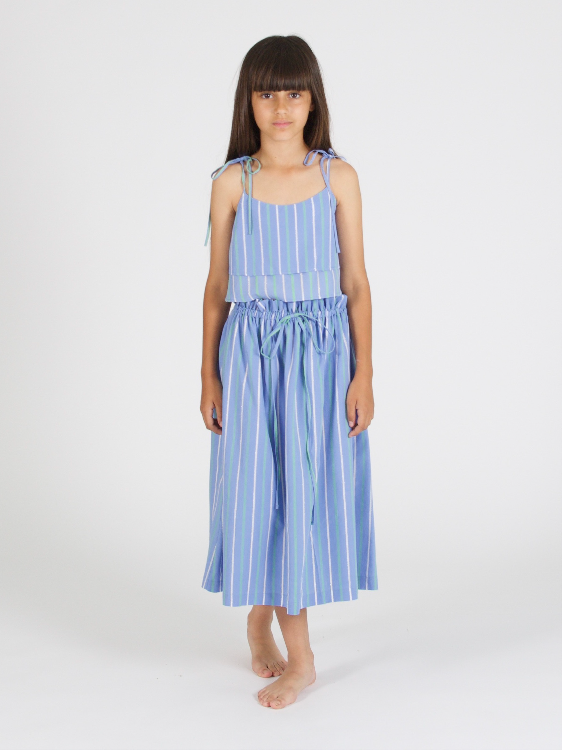 Regular fit striped peplum blouse, styled with a double peplum and tied on shoulders