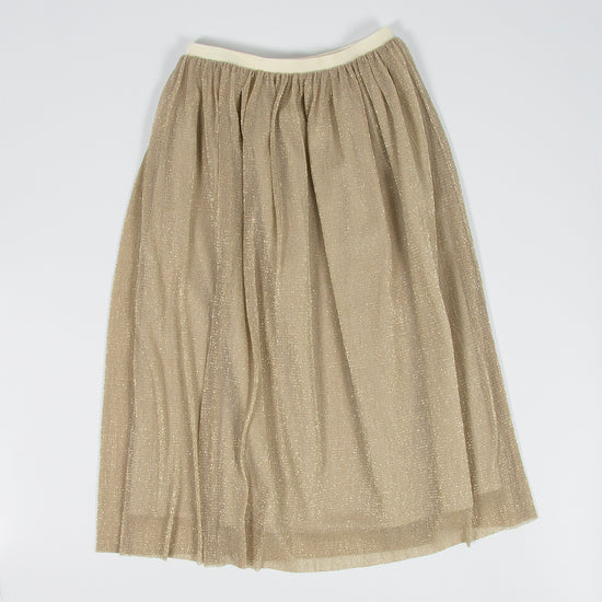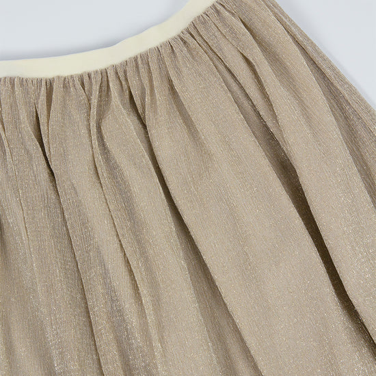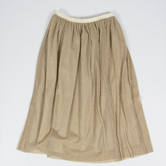 Midi skirt with elasticated waistband in golden tulle lined with voile.