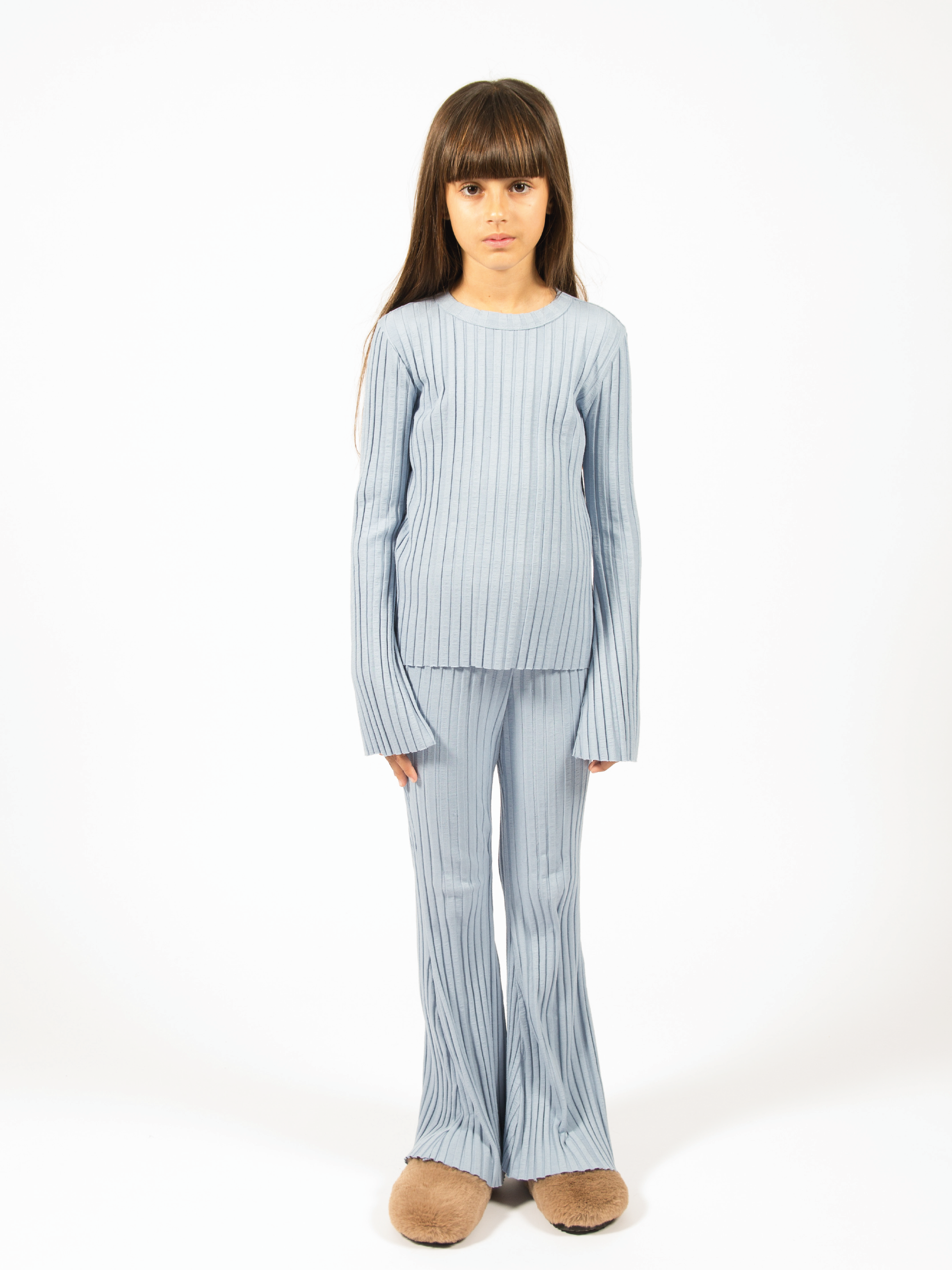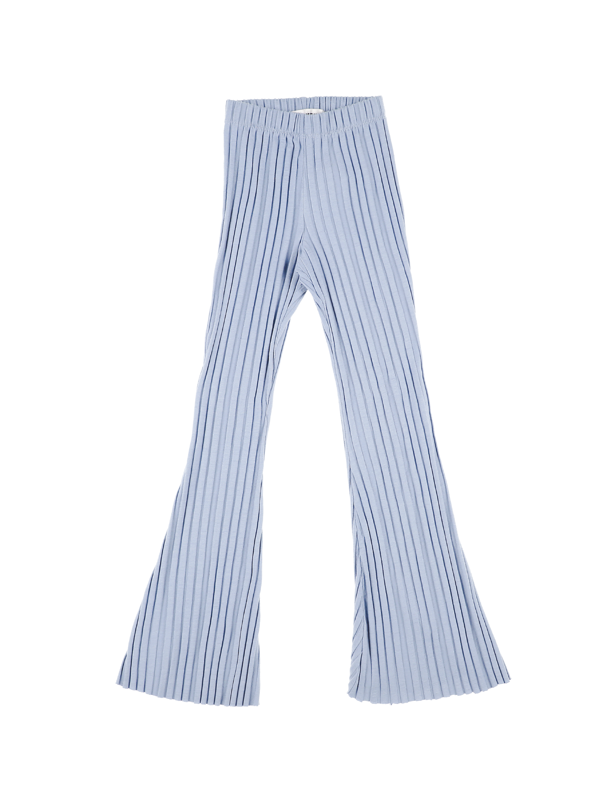 Trousers made from a cotton rib, elasticated waistband and ultra-wide flare.