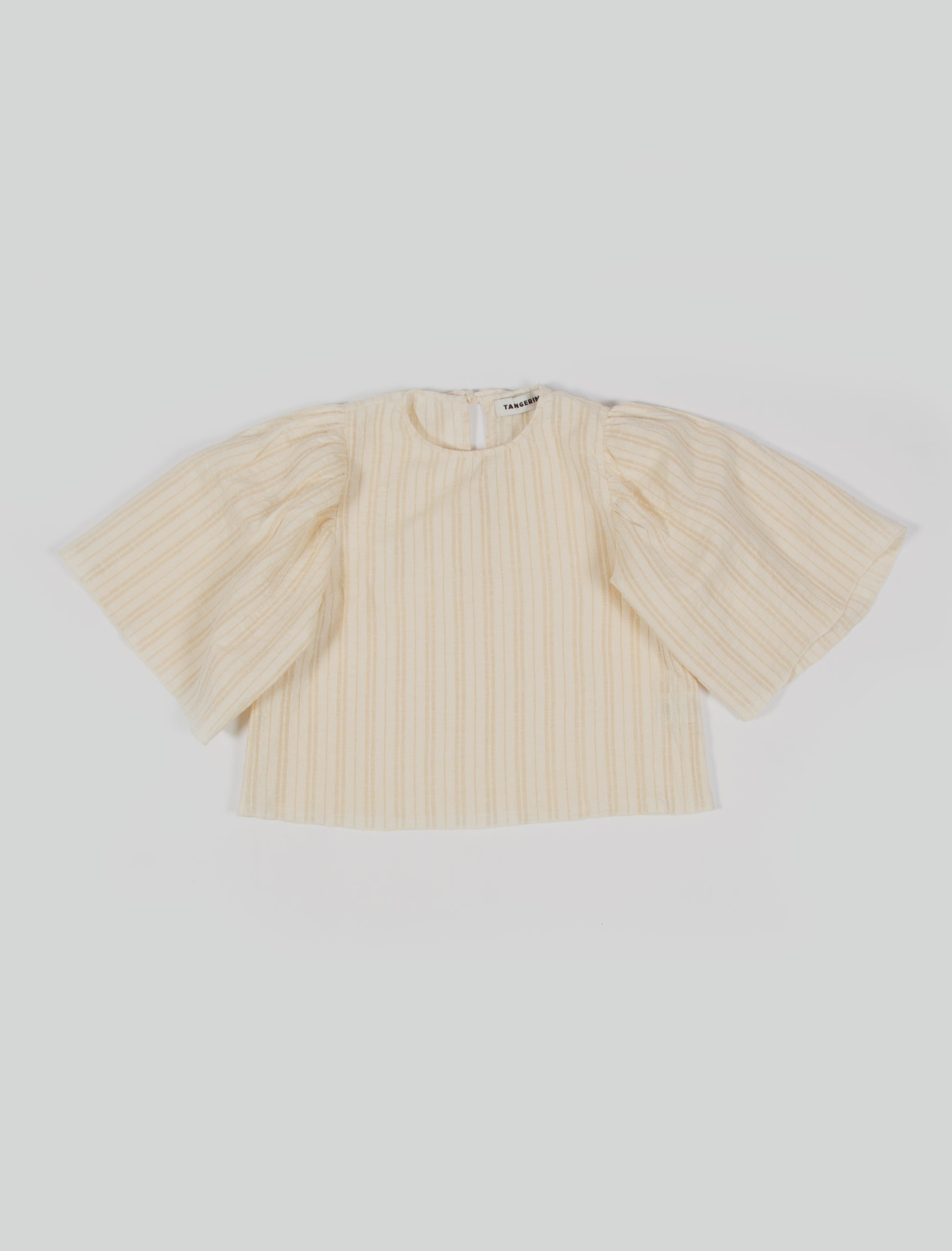 Volumed sleeve top with regular fit and tied on the back neckline.
