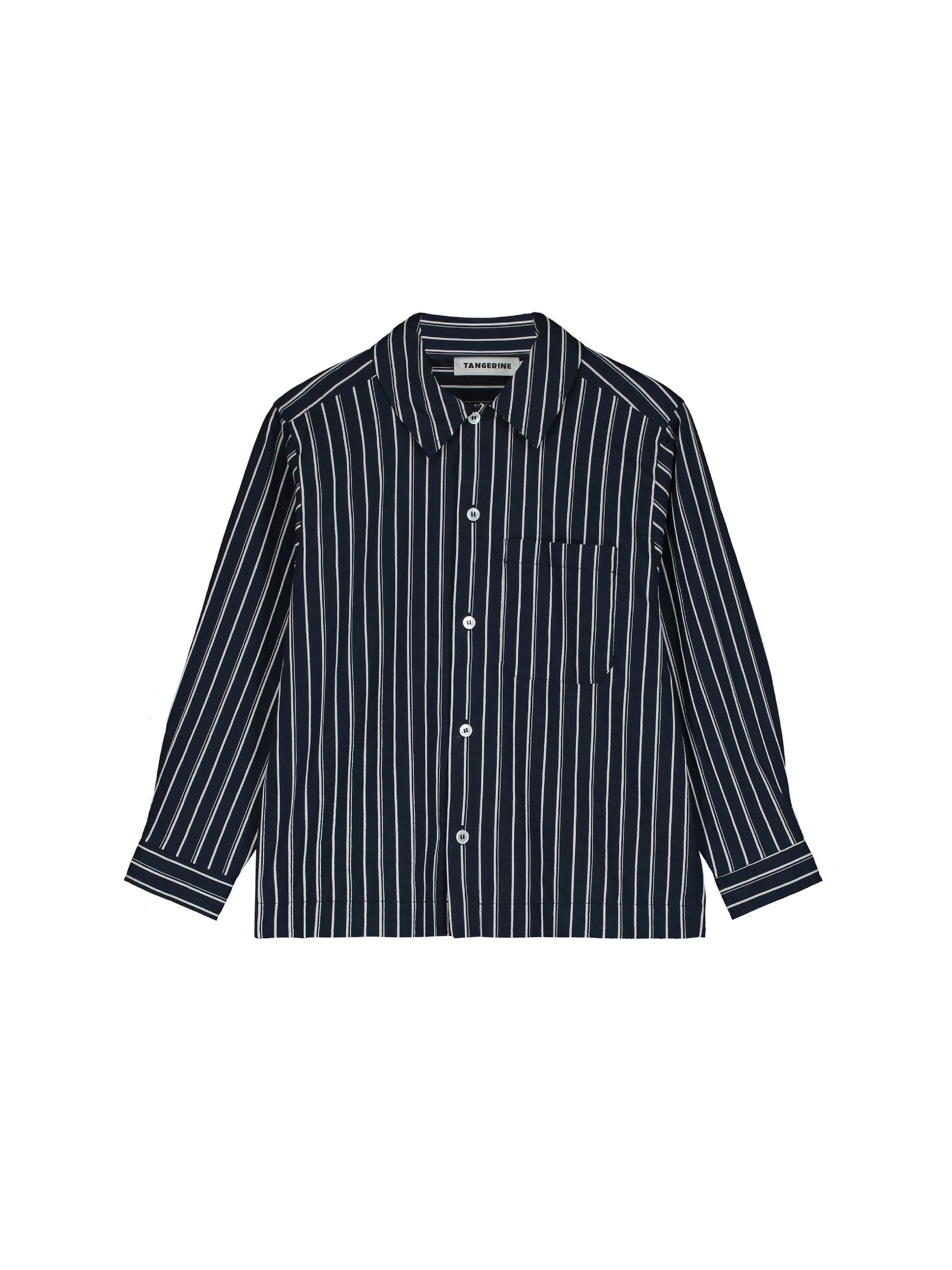 Shirt made from woven striped cotton. Boxy fit with button closure, styled with chest pockets and buttoned cuffs.